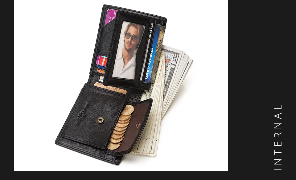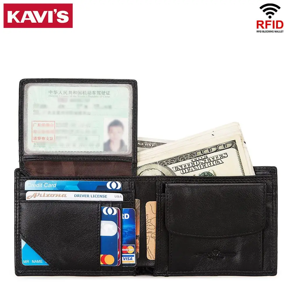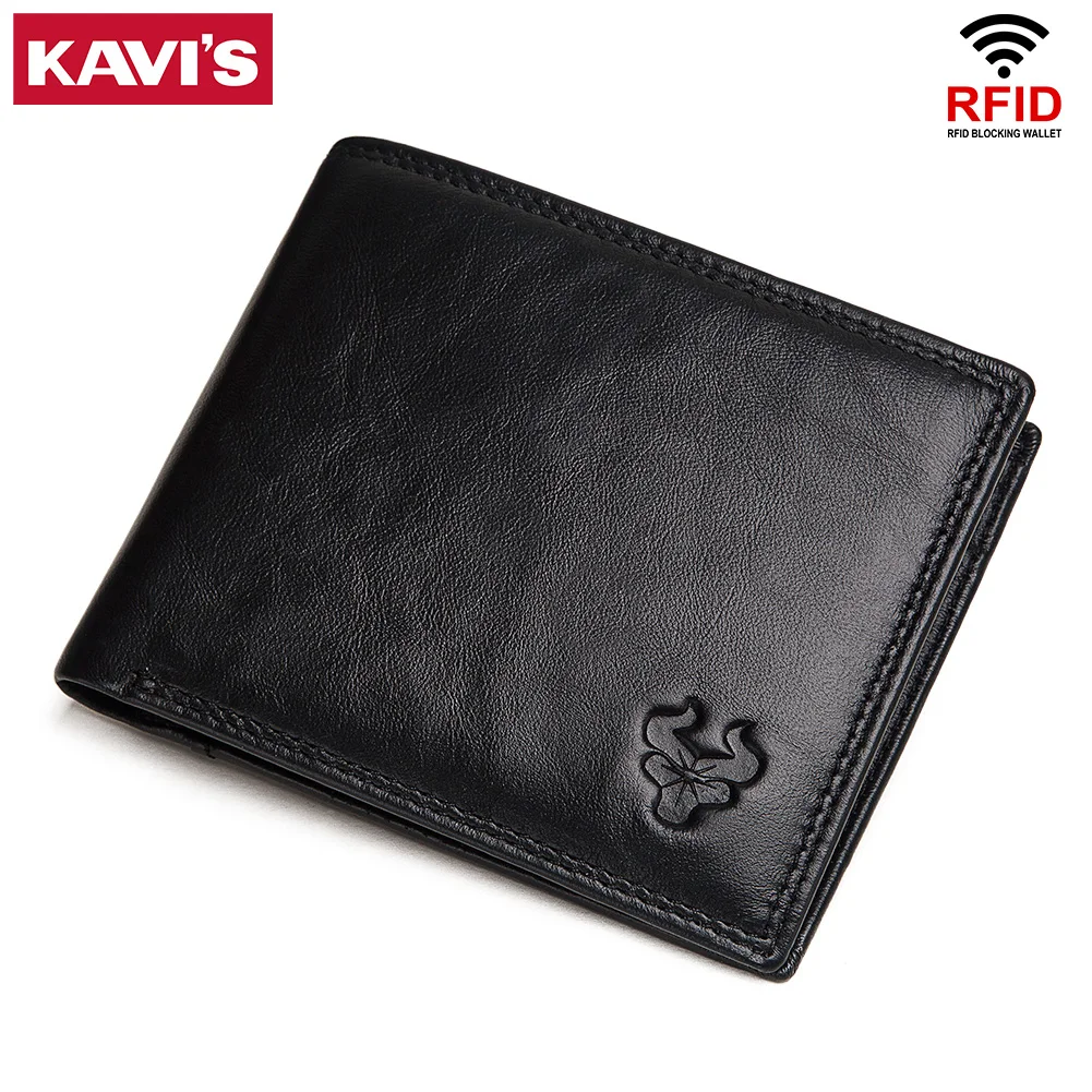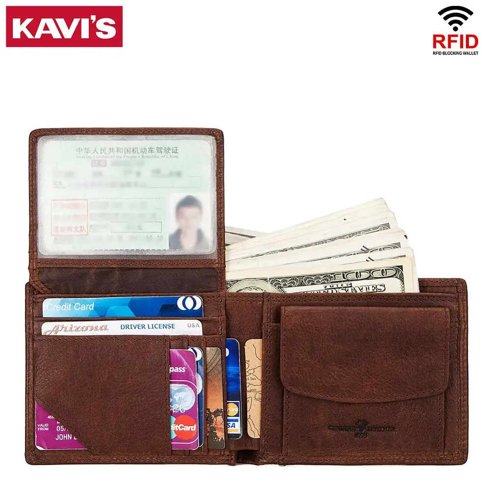 Мужские кошельки KAVIS из натуральной коровьей кожи с маленькое отделение для монет, компактный кошелек коричневого цвета из натуральной кожи с отделениями для карт