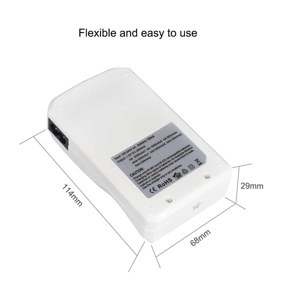 Спецификация:1. Это зарядное устройство может заряжать 1-4 шт. AA/AAA Ni-mh/Ni-Cd аккумуляторы, ЖК-дисплеи.2. Зарядка под управлением IC. -В разумно отключает режим быстрой зарядки, затем переходит к зарядке, гарантирует полную зарядку, В то же время защита от перезарядки ЖК-дисплей будет включен и покажет свой цвет фона в течение 2 секунд при подключении к источнику питания, а затем выключен.Параметр:Номер модели: PL-NC01Вход: 100-240 В переменного тока, 50/60 ГцВыход: 1,2 V DC 2000mAAA: 2000mA * 1/ 1000mA * 2/ 500mA * 3/ 500mA * 4AAA: 1000mA * 1/ 500mA * 2/ 250mA * 3/ 250mA * 4Материалы: ПУ, полиэстер, нейлон, по индивидуальному заказуВилка: США, ЕС, Великобритания, АвстралияЛоготип: PaloЦвет: цвет изображенияСертификация: RoHs, CB, INMETROПреимущества:1) высококачественный материал2) высокое качество3) передовые технологии и тонкое мастерство4) безопасность5) горячая Распродажа