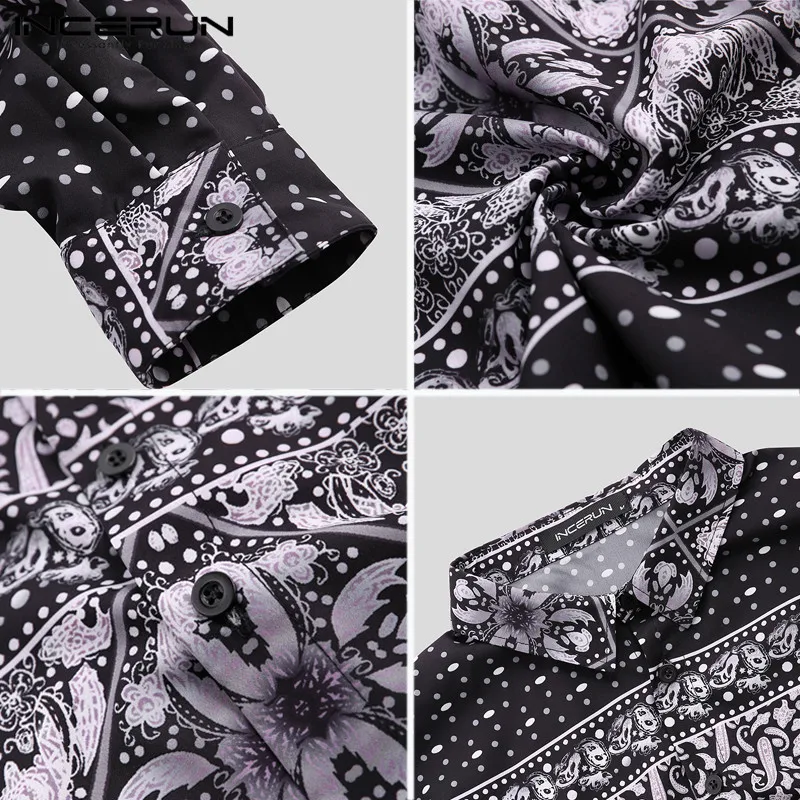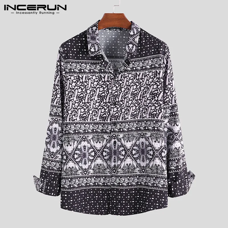 Рубашка INCERUN 2022 в этническом стиле с принтом, Мужская винтажная рубашка на пуговицах в стиле High Street с отложным воротником и длинными рукавами, мужские брендовые Гавайские рубашки