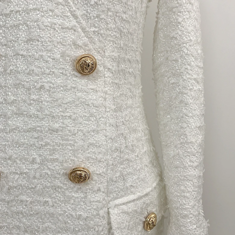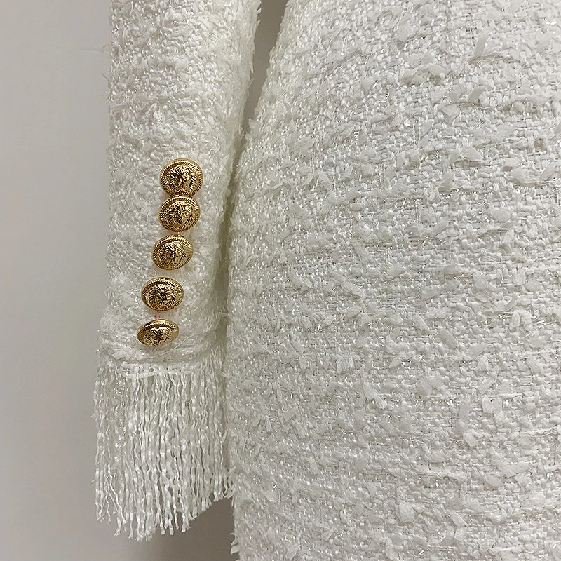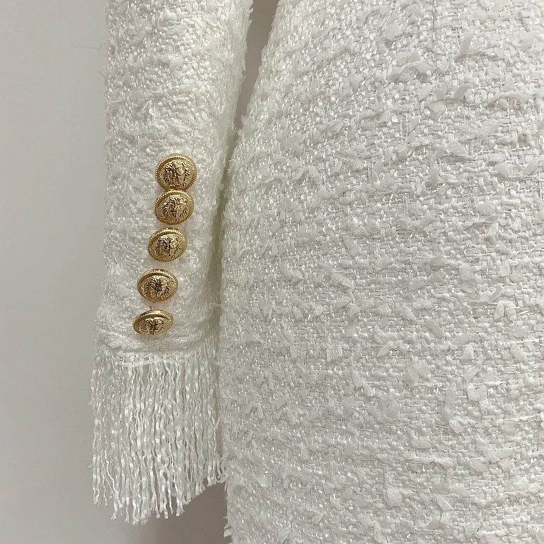 Женское твидовое платье, с V-образным вырезом, длинным рукавом, кисточками, пуговицами в виде Львов, бахромой, Осень-зима 2021