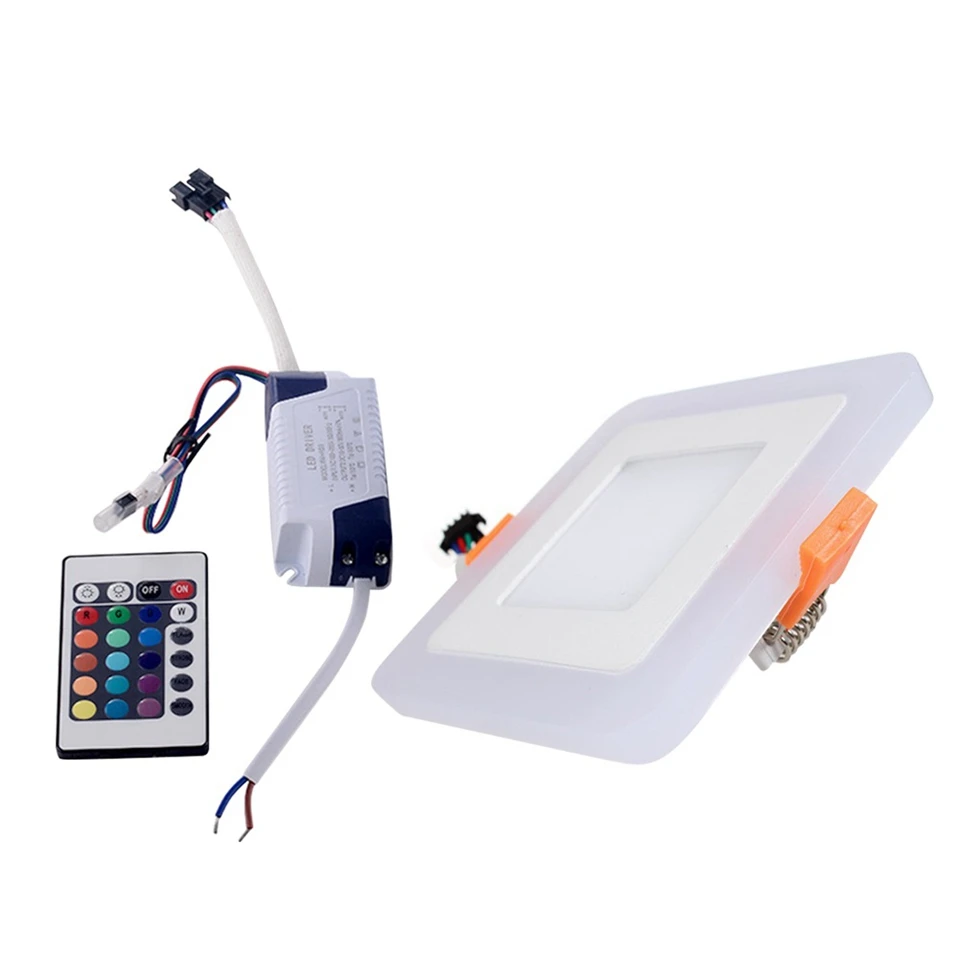 Двойной Цветной квадратный RGB светодиодный светильник на панели 6 Вт 9 Вт 16 Вт 24 Вт ультра тонкий Встраиваемый светодиодный потолочный светильник с пультом дистанционного управления