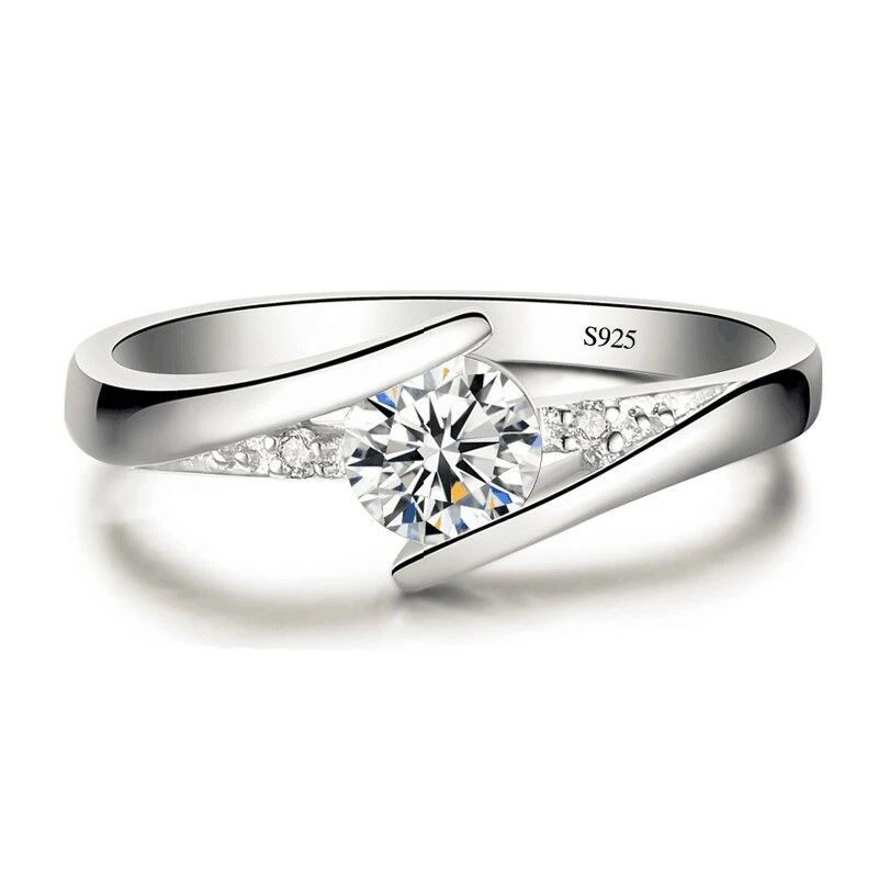 Кольцо женское обручальное с кристаллами, маленькое, круглое, серебристое
