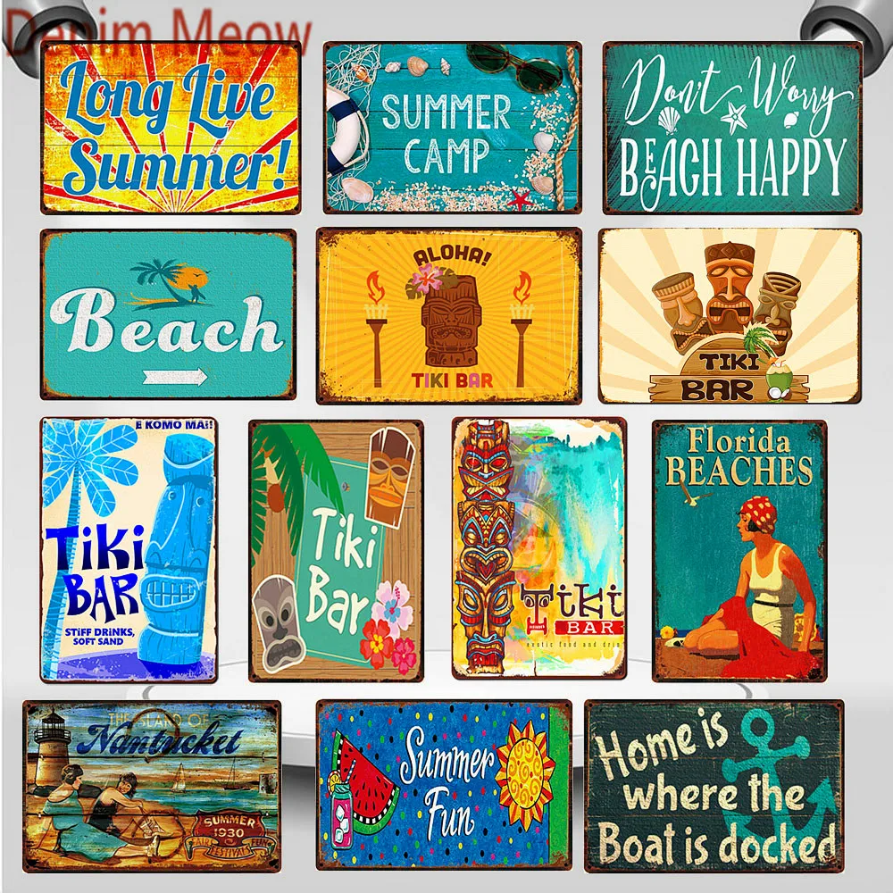 Шебби-шик Тики Бар Флорида пляж винтажные металлические знаки летний лагерь Калифорния серфинг рай настенные художественные наклейки домашний декор WY92