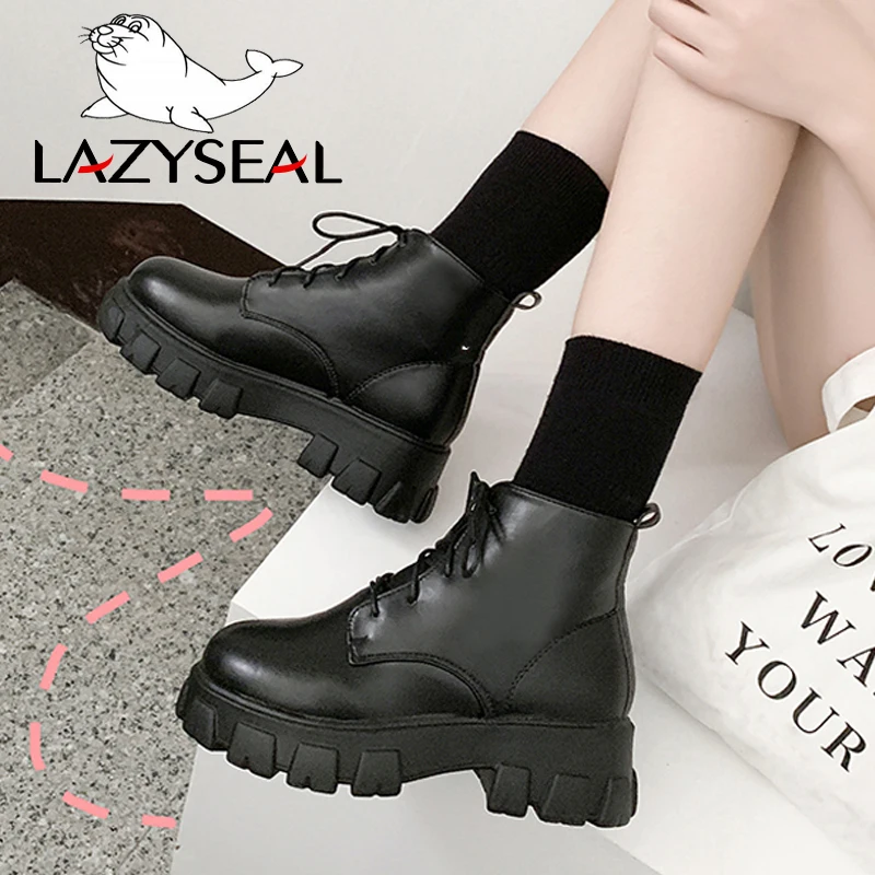 Женские ботинки на платформе LazySea, Зимние непромокаемые ботинки на шнуровке, с круглым носком, Нескользящие, 2019