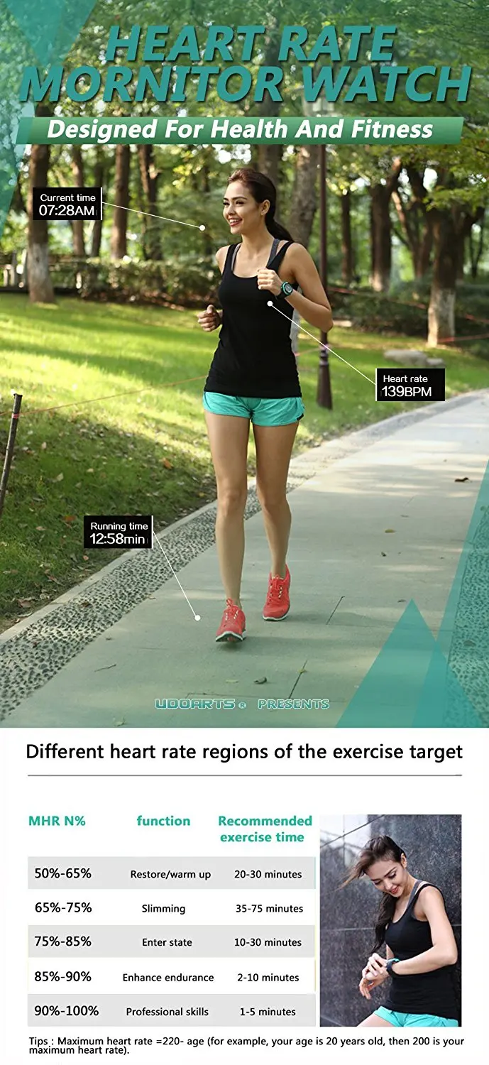 Новые поступленияUdoarts HRM с шагомером -- предназначен для здоровья и фитнеса.Если вы заинтересованы в эффективном улучшении своего здоровья, отслеживании интенсивности вашего фитнеса и достижении своих спортивных целей, пульсометр Udoarts-это подходящий механизм для вас.Он предоставляет более точные и модные часы и нагрудные ремни, которые помогут вам ощутить бег, Велоспорт, фитнес, альпинизм, йогу, катание на лыжах,Теннис, гребля и т. Д.Характеристики продукта:Данные о сердечном ритме в реальном времени для мероприятий-Отображает непрерывный пульс-помогает людям достичь целей физических упражнений на основе пульсаТренировочные упражнения-Использует отслеживание активности для контроля Ваших шагов, сожженных калорий, расстояния и времениМодный и гуманизированный дизайн-Надевает часы на запястье или фиксирует на велосипеде-Позволяет получить наилучшую позу и состояние для бега, езды на велосипеде, скалолазания и т. Д.-Легко заменяет батарейкиБолее точный способ на рынке-Контролирует Пульс с помощью нагрудного ремня для получения наиболее точного значения-Включает в себя нагрудный ремень для измерения пульса из Мягкий тканевый материал, который идеально и комфортно адаптируется к форме вашего телаОдин размер подходит для большинства-Нагрудный ремень можно растянуть от 60 см до 145 смВ комплекте в коробке:• Часы• Нагрудный ремень 2• Упаковка из 5 аккумуляторов (CR2032)• Отвертка• Руководство пользователя на английском языкеОписание функций:• Точное беспроводное измерение пульса• Значение пульса, максимальное значение HR (частота сердечных сокращений), среднее значение HR• Запись времени упражнений и потребления калорий упражнений• Установка максимального пульса и сигнализации о низком пульсе• Подсчет шагов, расстояние, время, ккал• Набор мишеней• Часы, календарь• Будильник• Таймер• Хронограф• Электронная подсветка• Запись в течение 4 днейТехнические характеристики (часы):• Длина: 24,5 см/9,65 дюйма• Диаметр циферблата: 48 мм• Рабочая температура: -10 ℃ ~ + 60 ℃• Тип батареи: CR2032• Срок службы батареи: 36 месяцев (японская батарея)Технические характеристики (нагрудный ремень):• Длина: 60 см-145 см/23,62 дюйма-57 дюймов (диапазон растяжения)• Расстояние излучения: ≤ 65 см• Тип батареи: CR2032• Срок службы батареи: 14 месяцев (японская батарея)Советы: 1. Избегайте помех, таких как мобильные телефоны, компьютер, Wifi и т. д. 2. Людям с заболеваниями сердца не подходит для этого продукта.По умолчанию, бесплатная гарантия на один год с момента покупки. И не забудьте о пожизненном обслуживании всех продуктов Udoarts!Нажмите кнопку «Добавить в корзину» сейчас, так как цена увеличится после акционного периода.Получите свой сегодня!