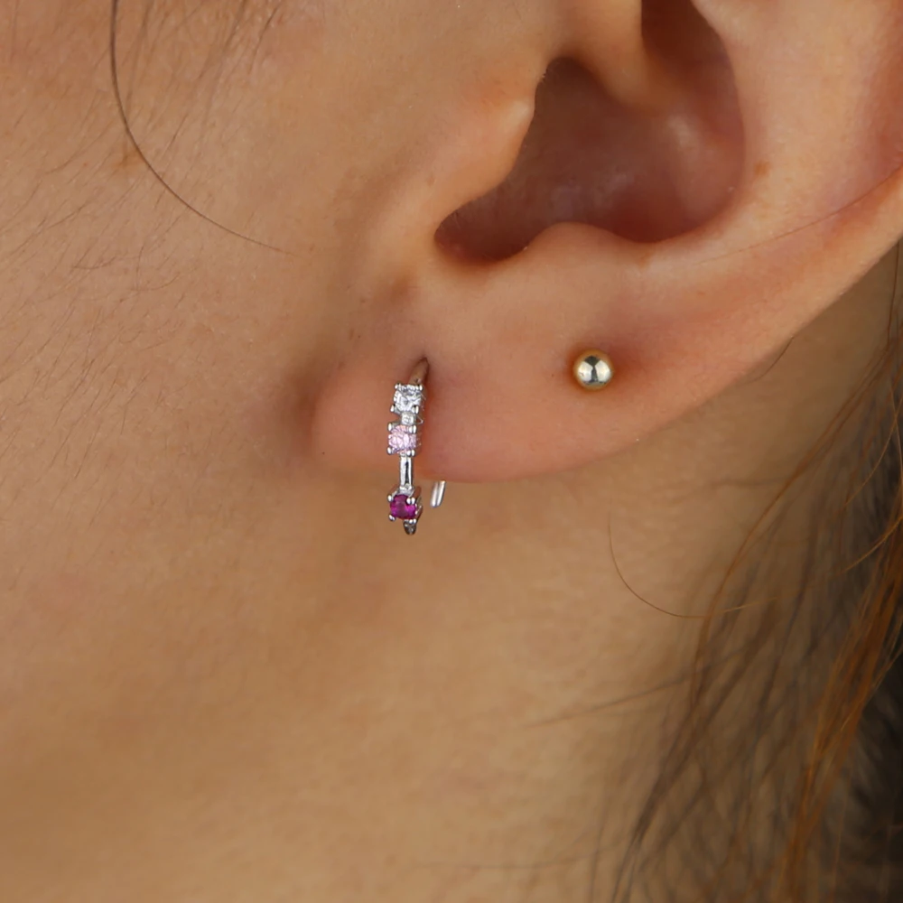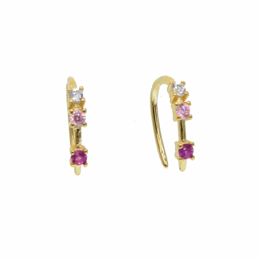 2021 золотое покрытие Рог Форма минималистский красочные CZ серьги-гвоздики 925 стерлингового серебра, розовый, розово-белый CZ милые серьги для женщин, ювелирные изделия