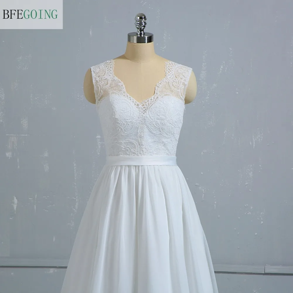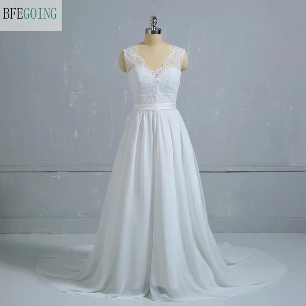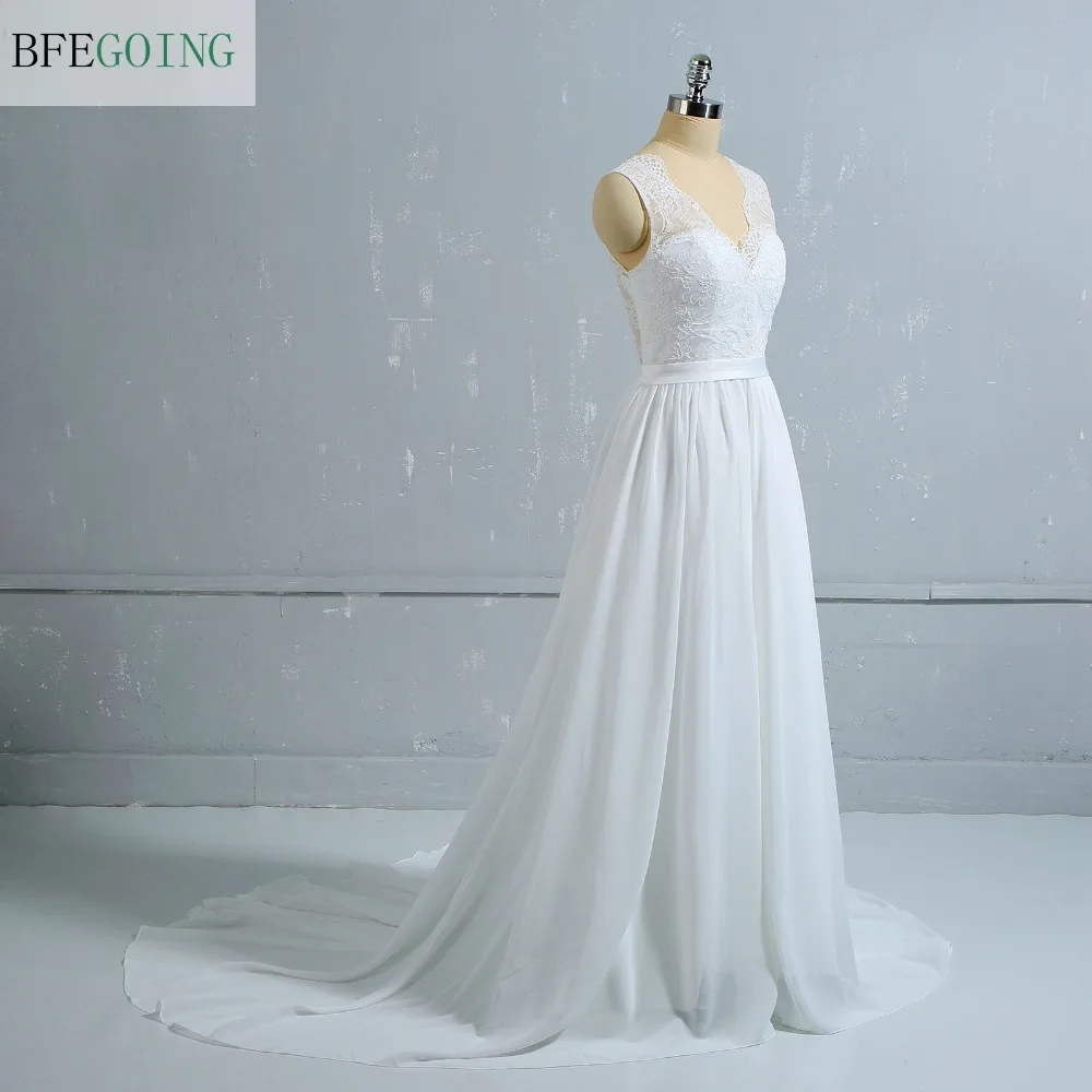 Шифоновое кружевное платье-трапеция цвета слоновой кости до пола, без рукавов, с V-образным вырезом и шлейфом для часовни, свадебное платье на заказ