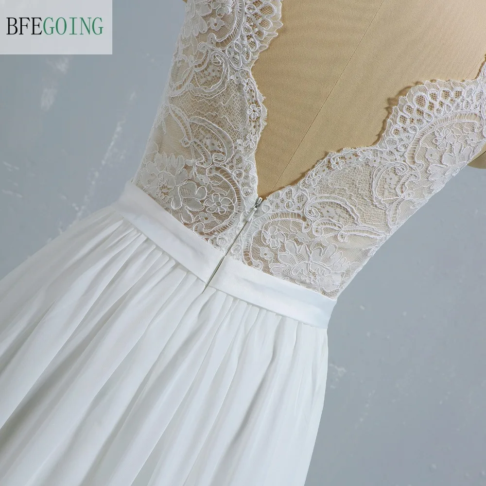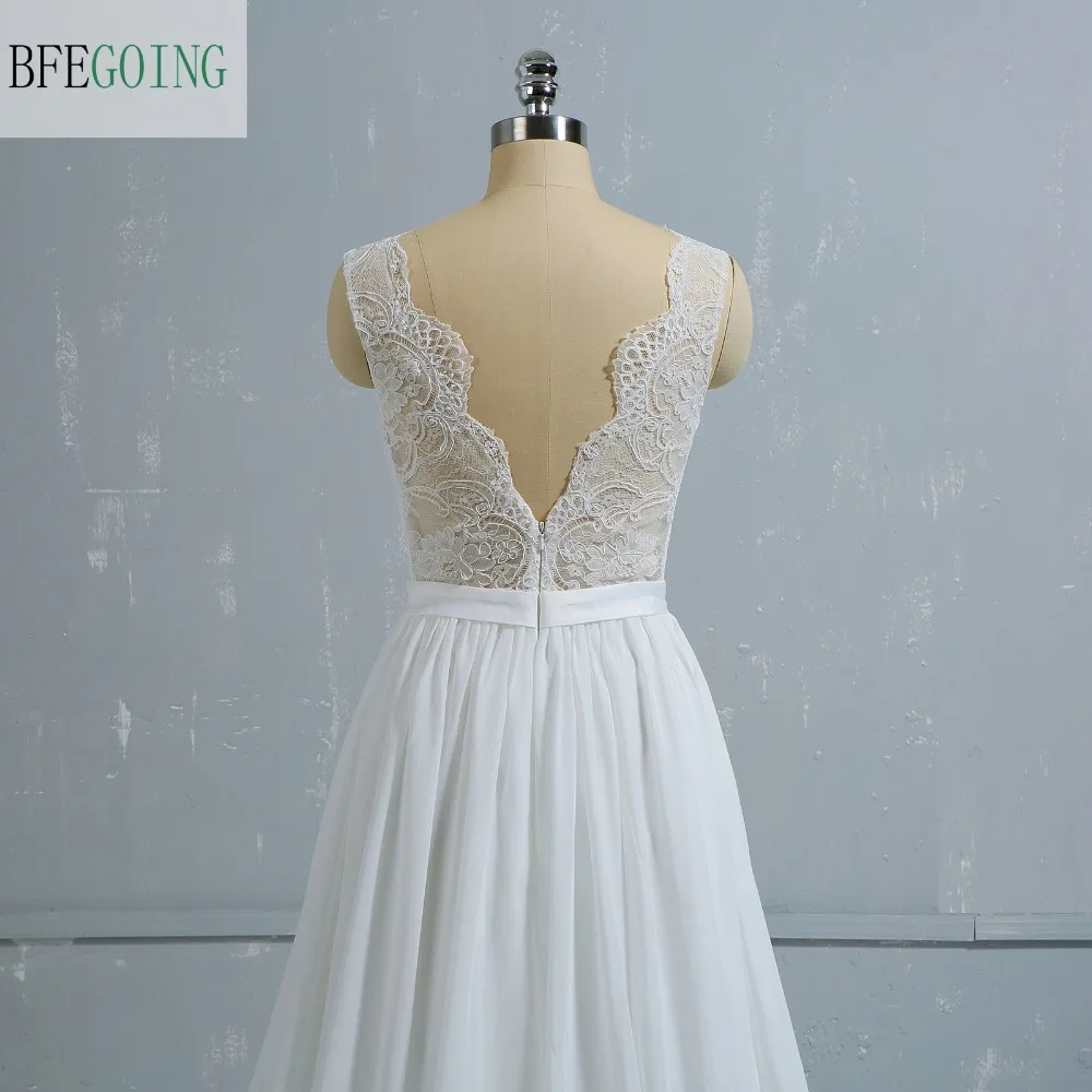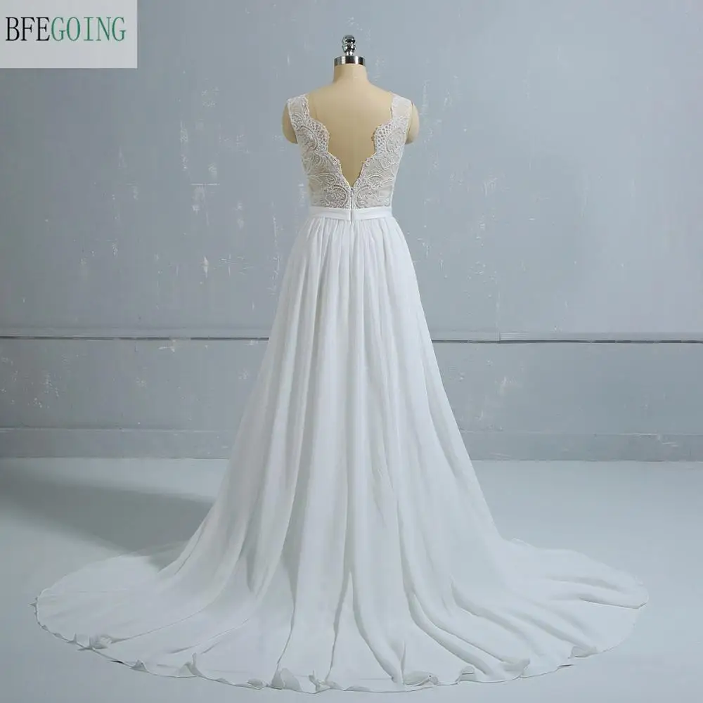 Шифоновое кружевное платье цвета слоновой кости с v-образным вырезом без рукавов длиной до пола, свадебное платье с длинным шлейфом