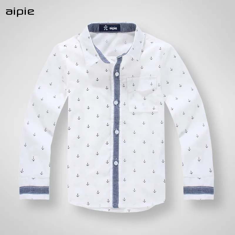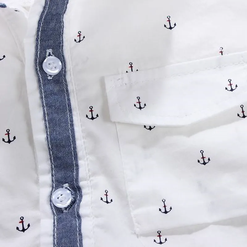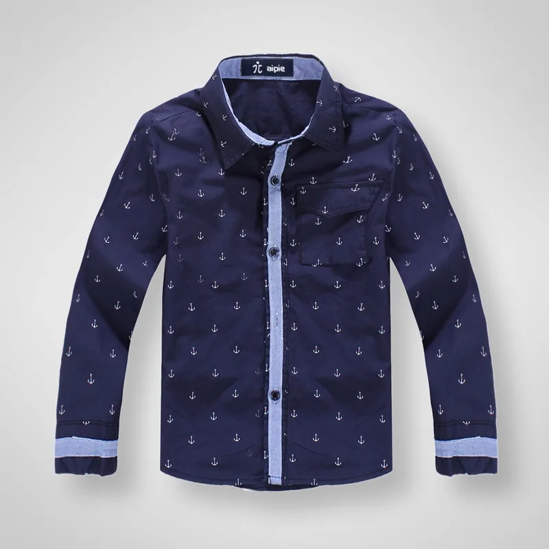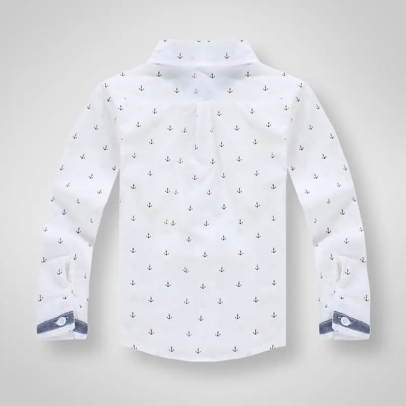 Детские рубашки 100% хлопковые рубашки с длинными рукавами и рисунком якоря для мальчиков, одежда для детей От 3 до 11 лет