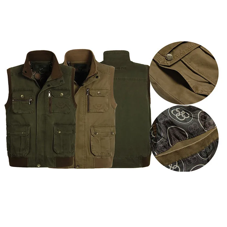 Жилет мужской из XL-6XL хлопка, с несколькими карманами, цвета хаки