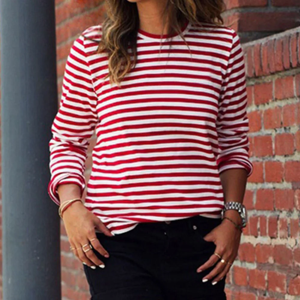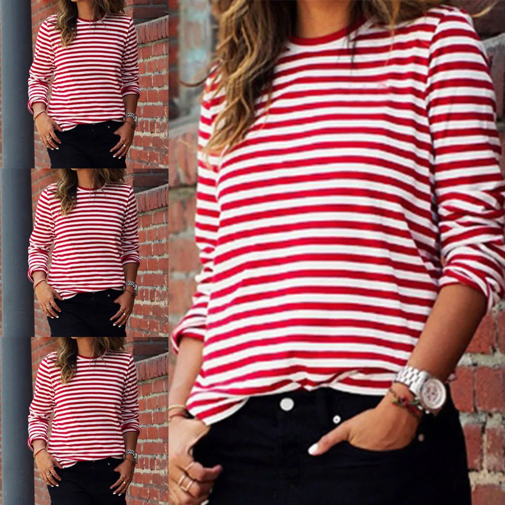Женская футболка в красно-белую полоску в стиле ретро, базовая футболка с длинным рукавом, Повседневная Уличная одежда, футболка бойфренда, женские топы, осень 2019