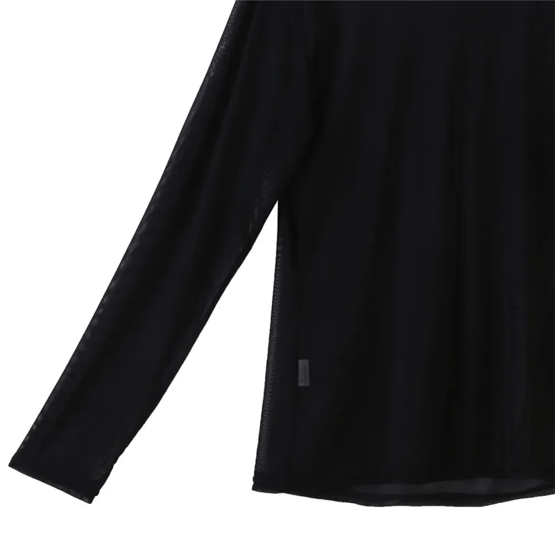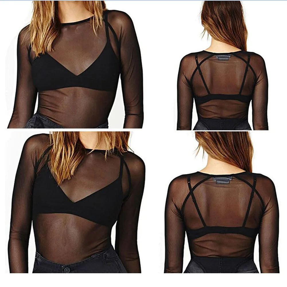 Женский прозрачный сетчатый топ с длинным рукавом, черный укороченн...