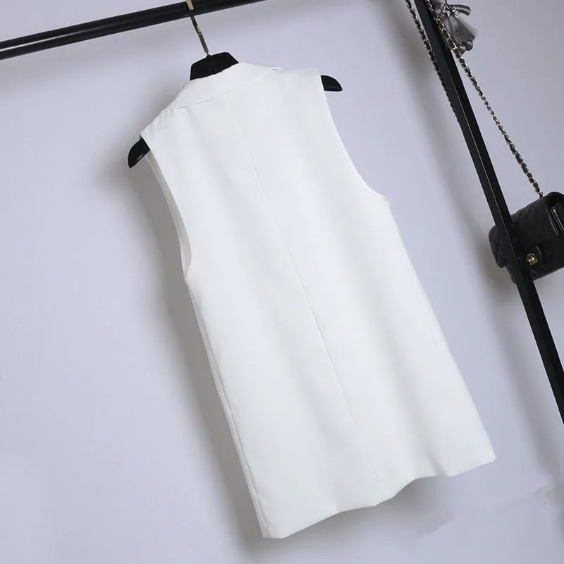 Жилет женский, Длинный блейзер без рукавов, для офиса, размера плюс