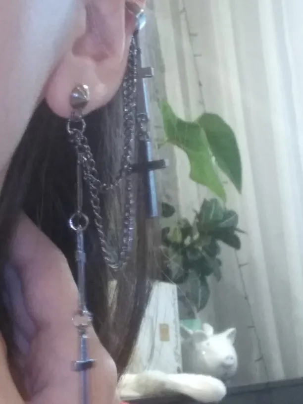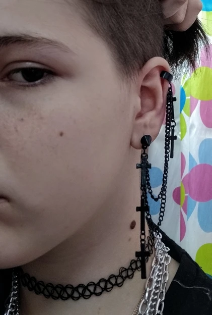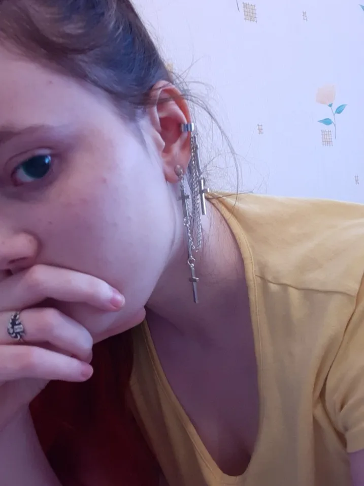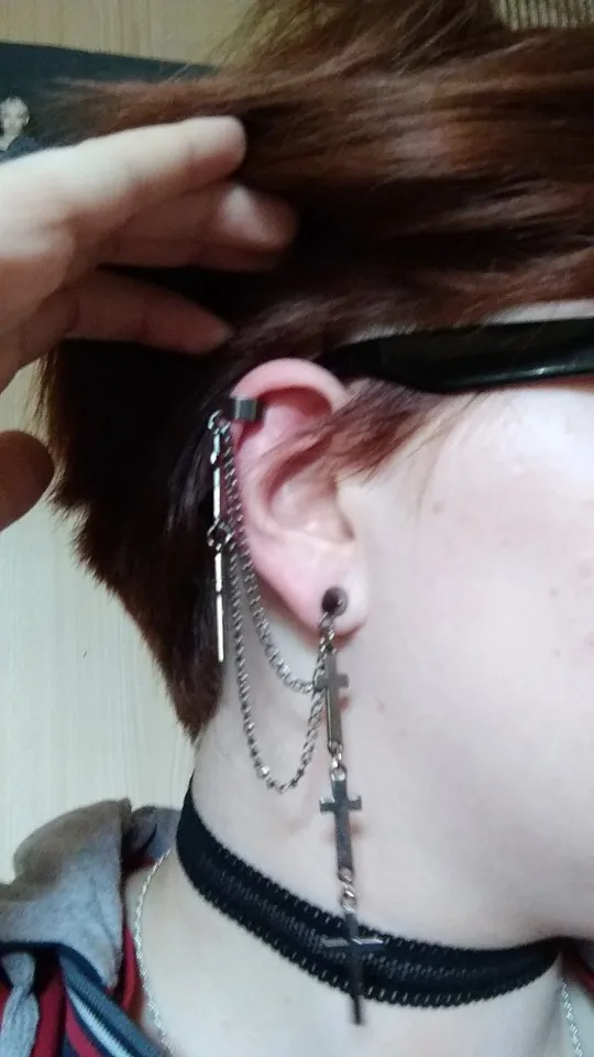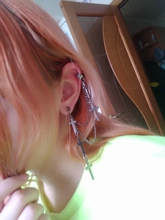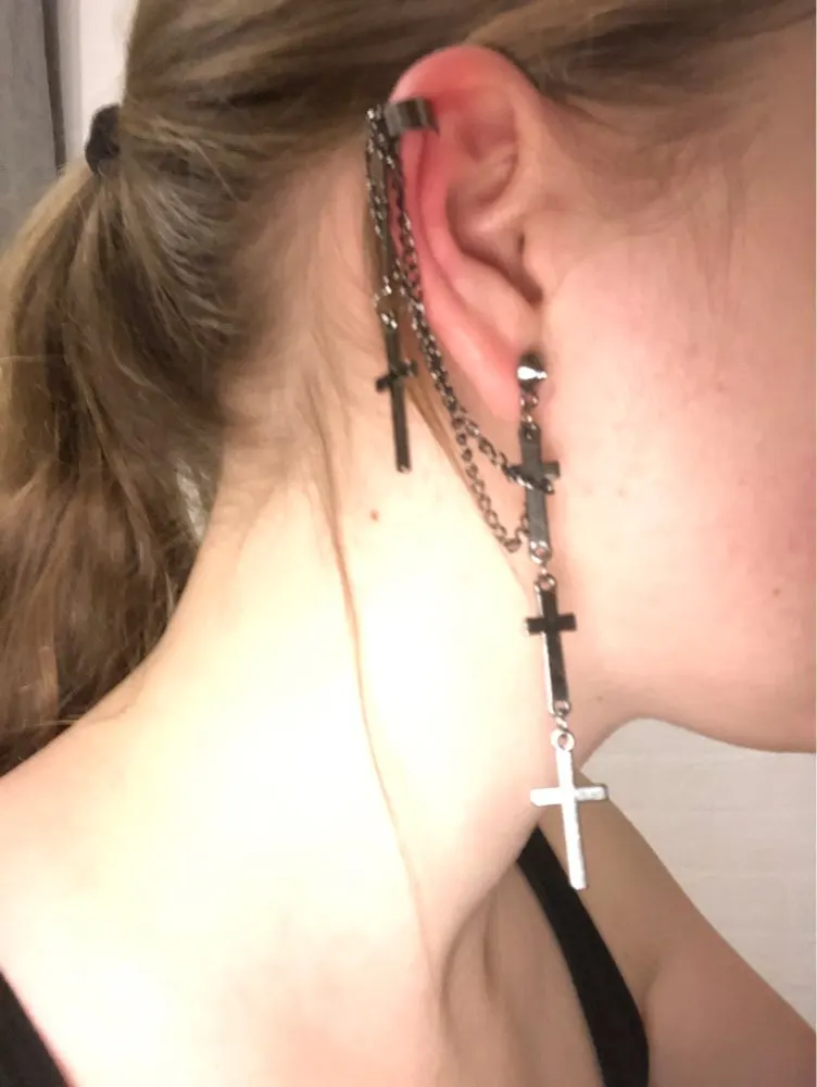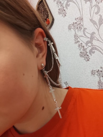 все очень круто!! немного тяжелые, но не критично. верхняя застёжка(?) держится не очень плотно, а если ее сильнее сдавить, то будет болеть ухо:( для непостоянного ношения очень классная вещь!! так что девочки, мальчики и небинарные персоны носите с удовольствием!!