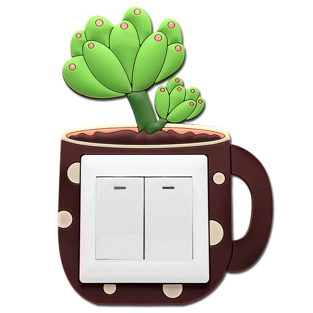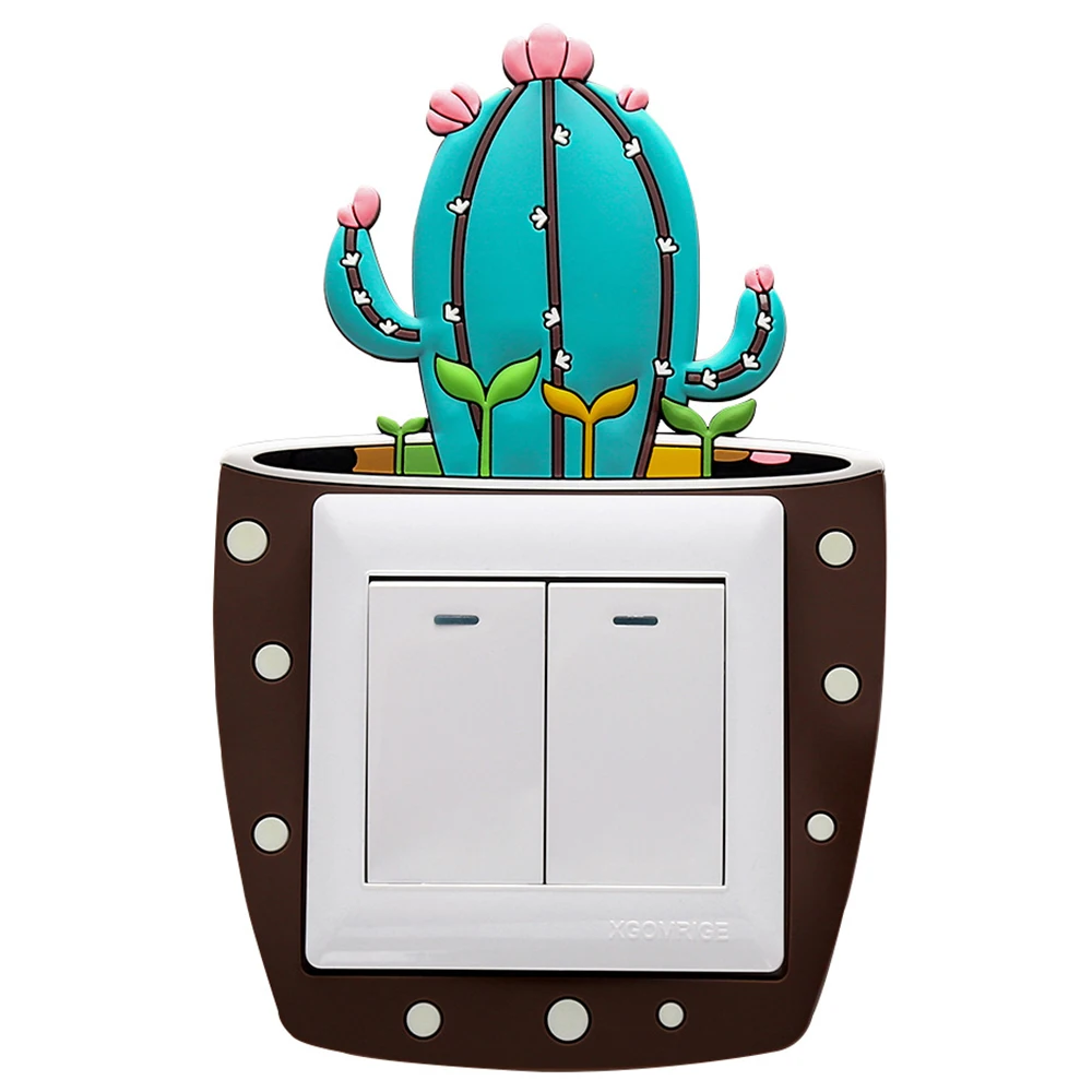 Настенные стикеры серии Кактус очень популярны, с двумя разными цветами в течение дня и ночи. Отличный способ идеально украсить вашу комнату и себя. Мягкий резиновый материал для 8,6 см * 8,6 см, 3,4 "* 3,4" дюймовый выключатель одинарный или гнездо платы