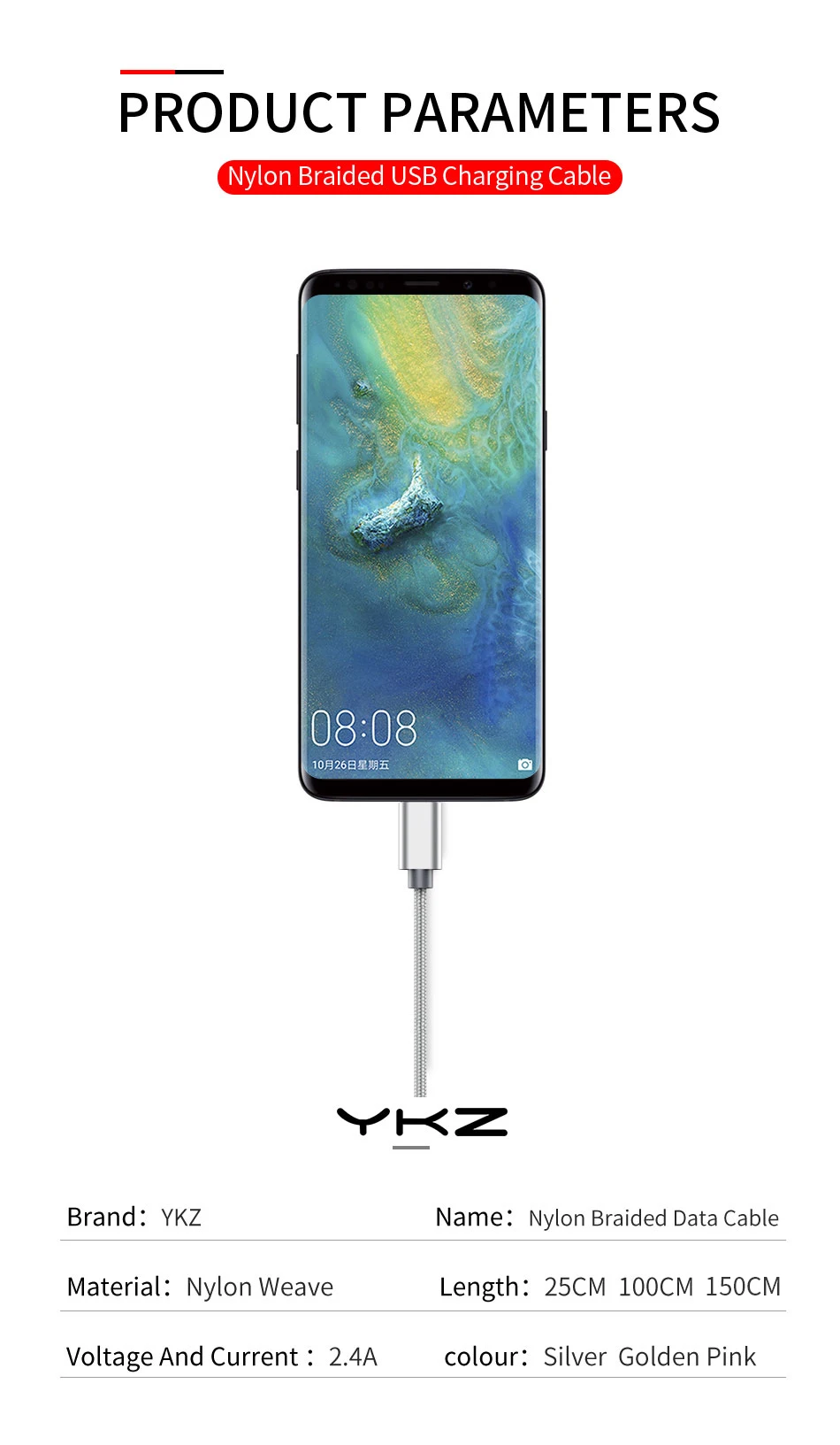 Кабель Micro USB YKZ с нейлоновой оплеткой, шнур для быстрой зарядк...