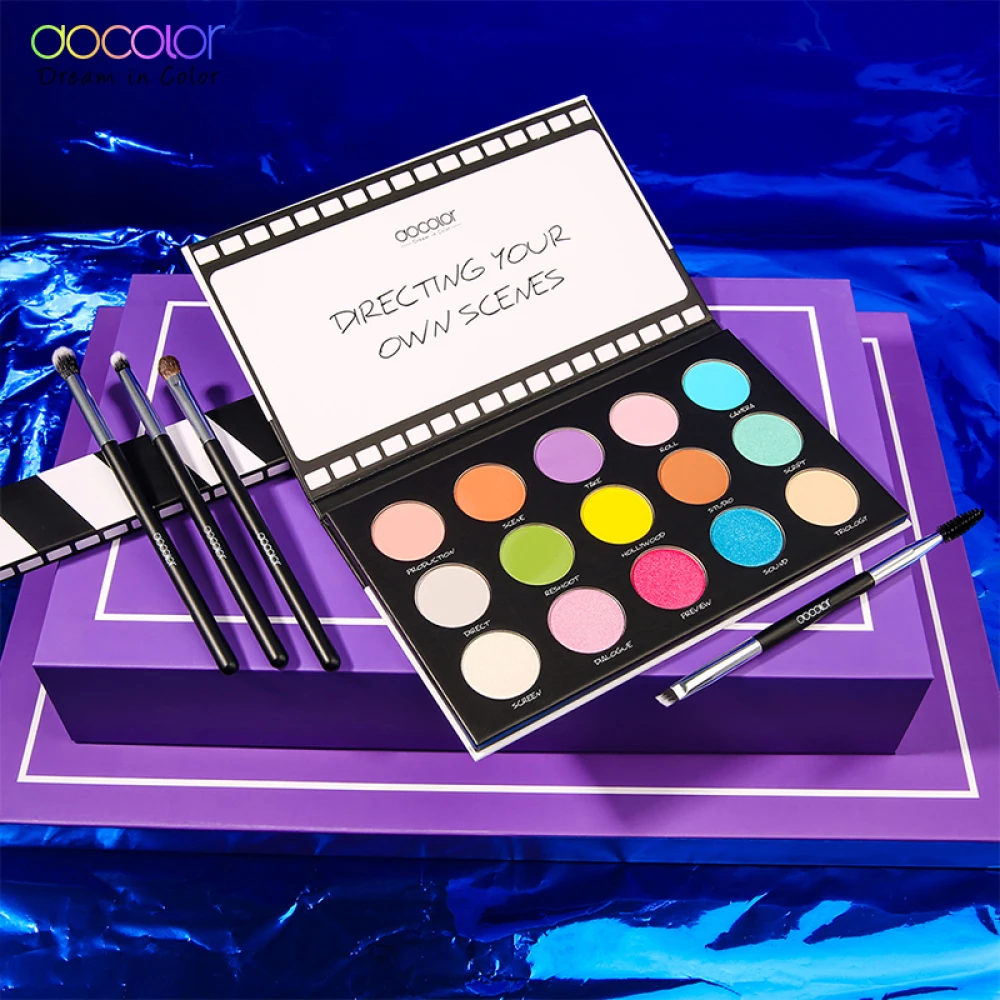 Docolor палитра теней для век 15 цветов Палитра теней для век пигментированные тени мерцающие водостойкая Палитра с 4 шт кисти для макияжа глаз