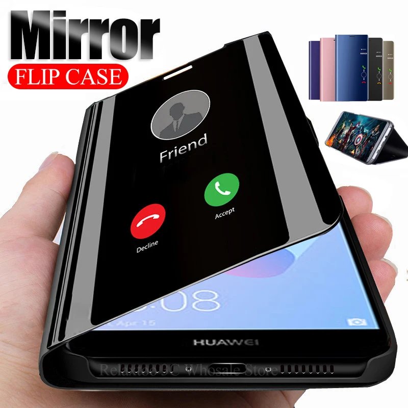 Зеркальный флип-чехол для huawei y6 prime 2018 y5 y9 2019 y7 pro кожаный чехол с подставкой на huawey y 5 6 7 9 5y 6y 7y 9y чехол для телефона