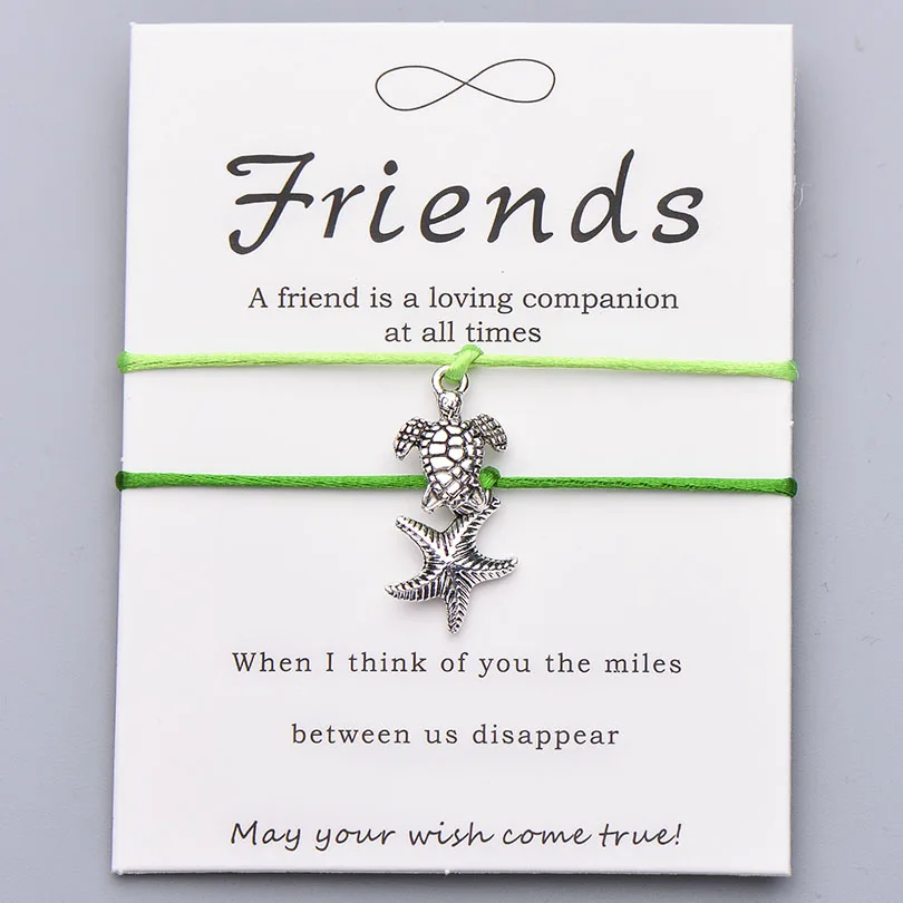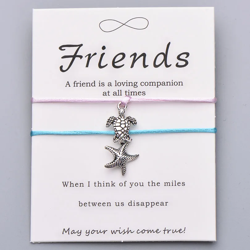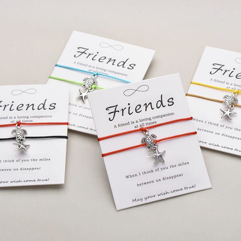 Название: Pipitree 2 шт./компл., очаровательный браслет с надписью «Best Friends Lucky Sea Turtle», «Морская Черепаха», «Морская звезда», для женщин и мужчин, браслеты с красной ниткой, ювелирные изделия Бренд: 100% новый Материал: металл и веревка Для: женщин/мужчин Регулируемый Размер: 12-28 см Карта Размеры: 7x9cm