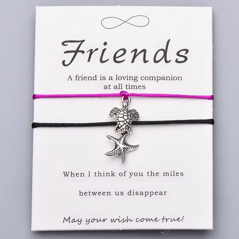 Браслеты Pipitree 2 шт.компл. Best Friends на удачу, морская черепаха, морская звезда, Шарм-браслет для женщин и мужчин, дружба, Красная Нить, пожелания, браслеты, ювелирные изделия