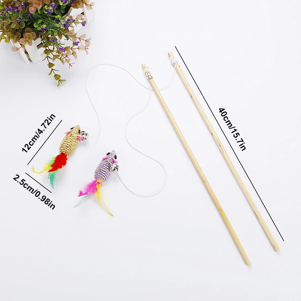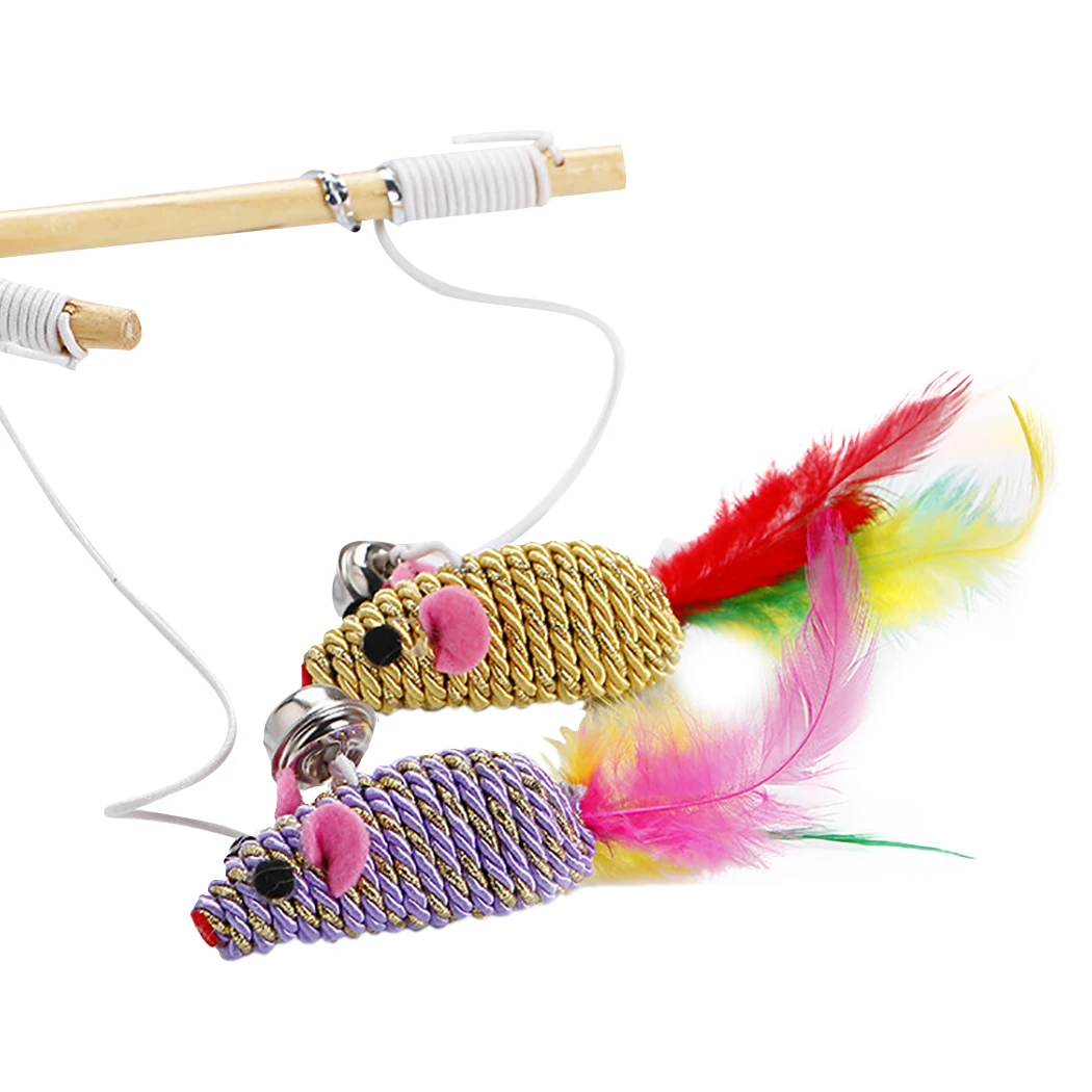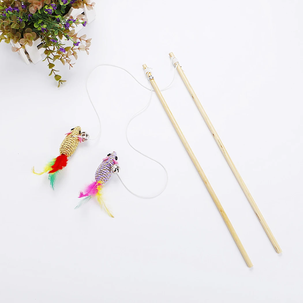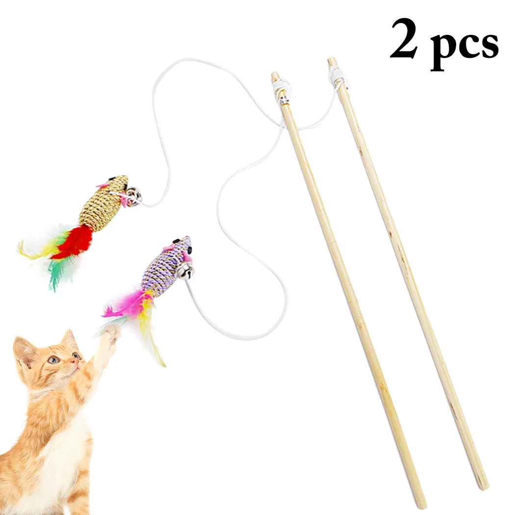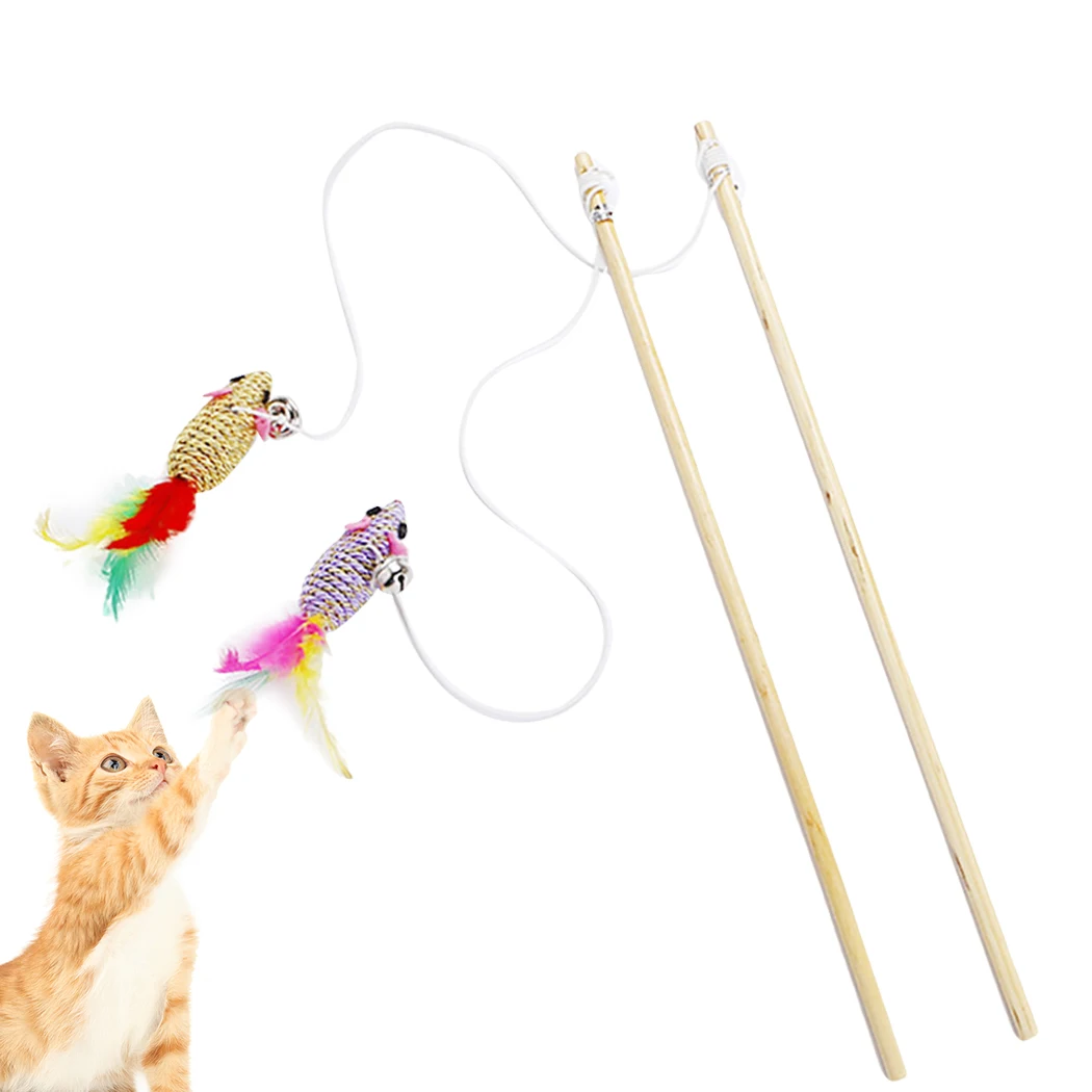 Игрушки для кошек, 2 шт., милые забавные искусственные перья, мышь, игрушка для кошек, палочка, деревянные игрушки для домашних животных, кошки, Интерактивная палочка, товары для кошек