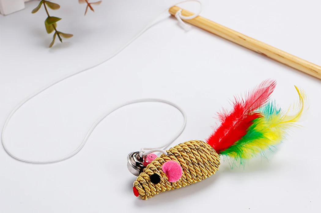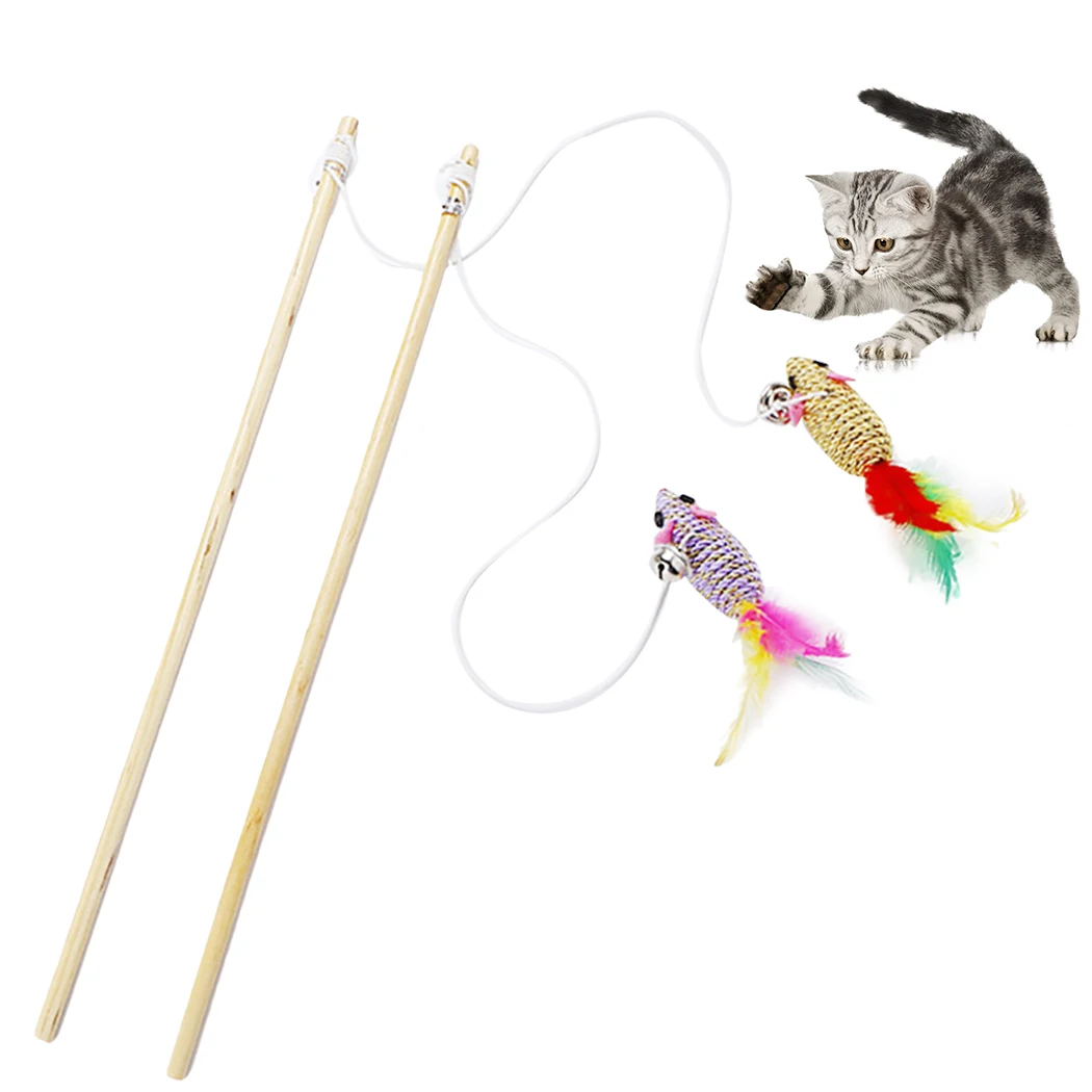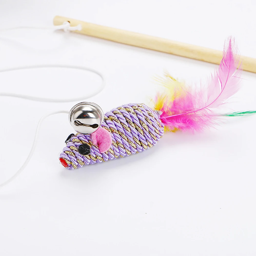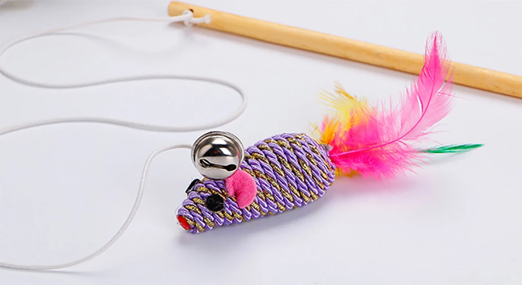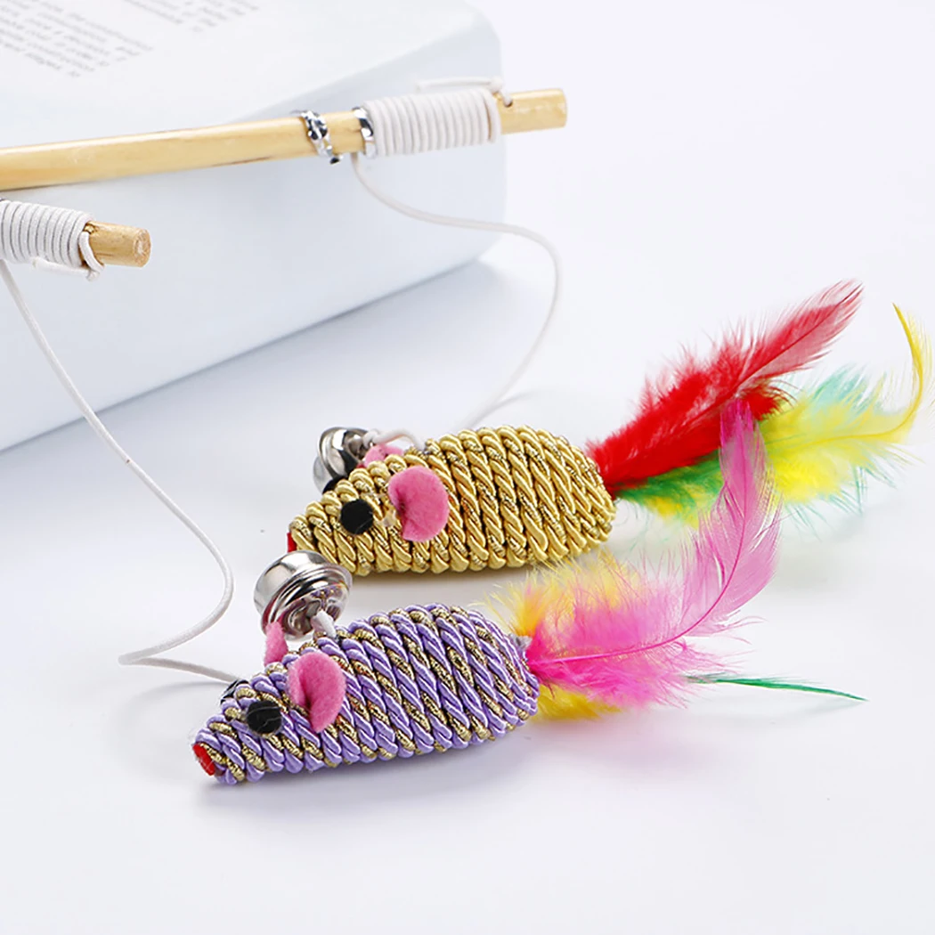 Игрушки для кошек, 2 шт., милые забавные искусственные перья, мышь, игрушка для кошек, палочка, деревянные игрушки для домашних животных, кошки, Интерактивная палочка, товары для кошек