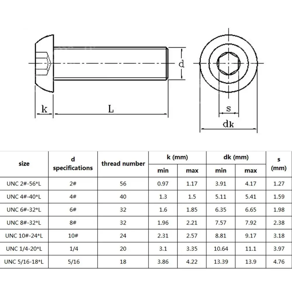 50 шт. UNC 2 #-56 4 #-40 6 #-32 8 #-32 стандартная грубая резьба США 304 из нержавеющей стали, шестигранная кнопка с шестигранником болт с головкой