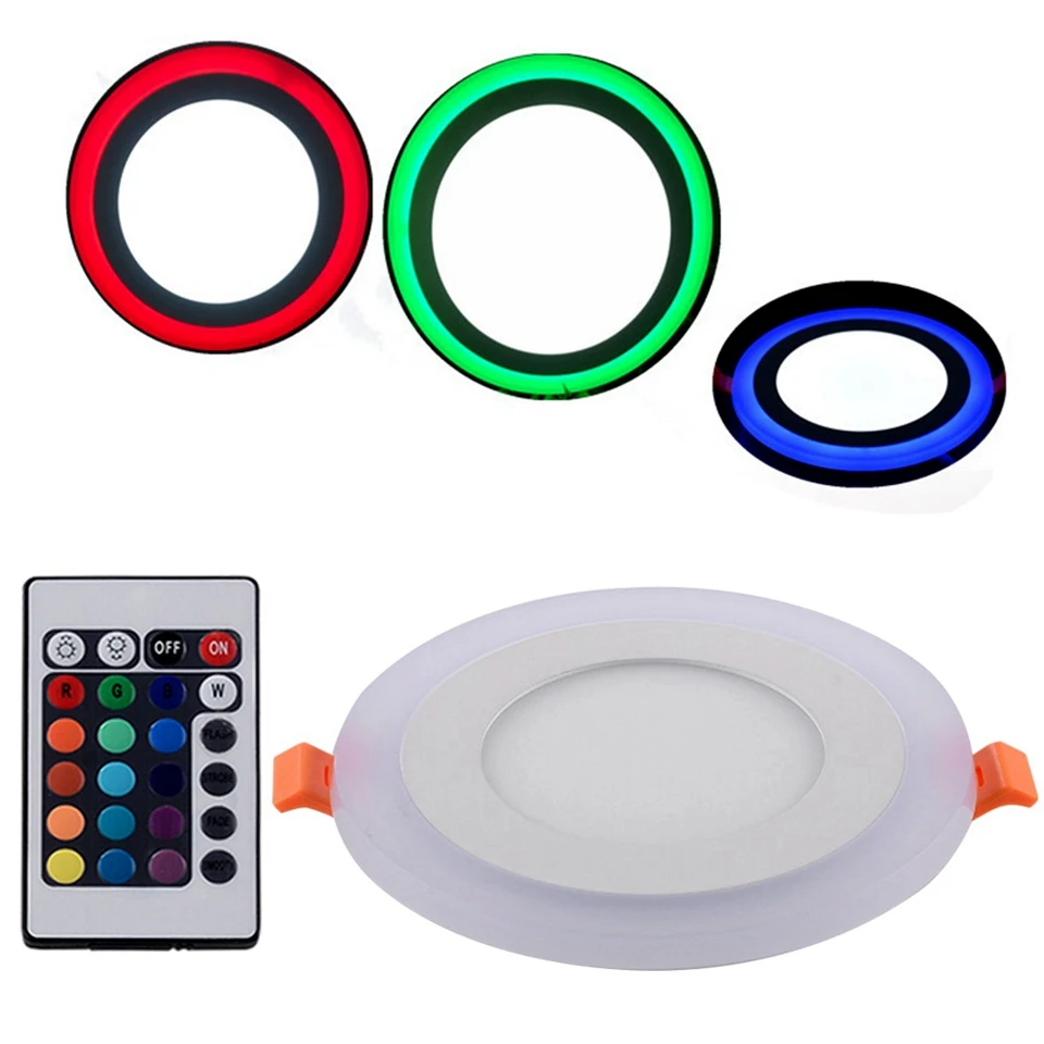 AC85-265V Круглыйквадратный пульт дистанционного управления двойной цвет RGB + белый светодиодный светильник панели 6 Вт9 Вт16 Вт24 Вт Встраиваемый светодиодный потолочный светильник