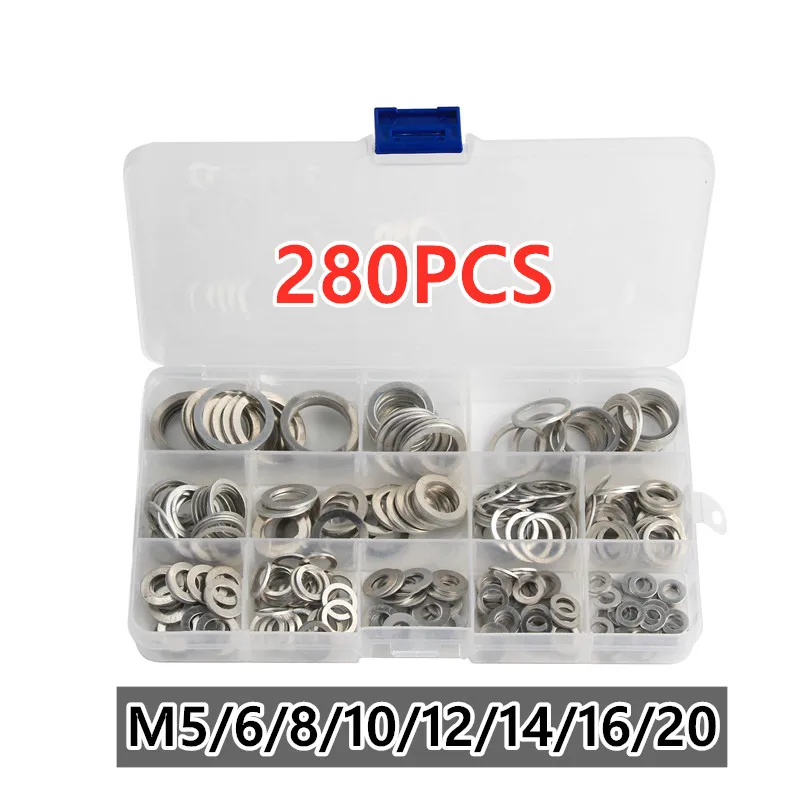 Набор Плоских прокладок алюминиевых шайб M5M6M8M10M12M14, 200280 шт.