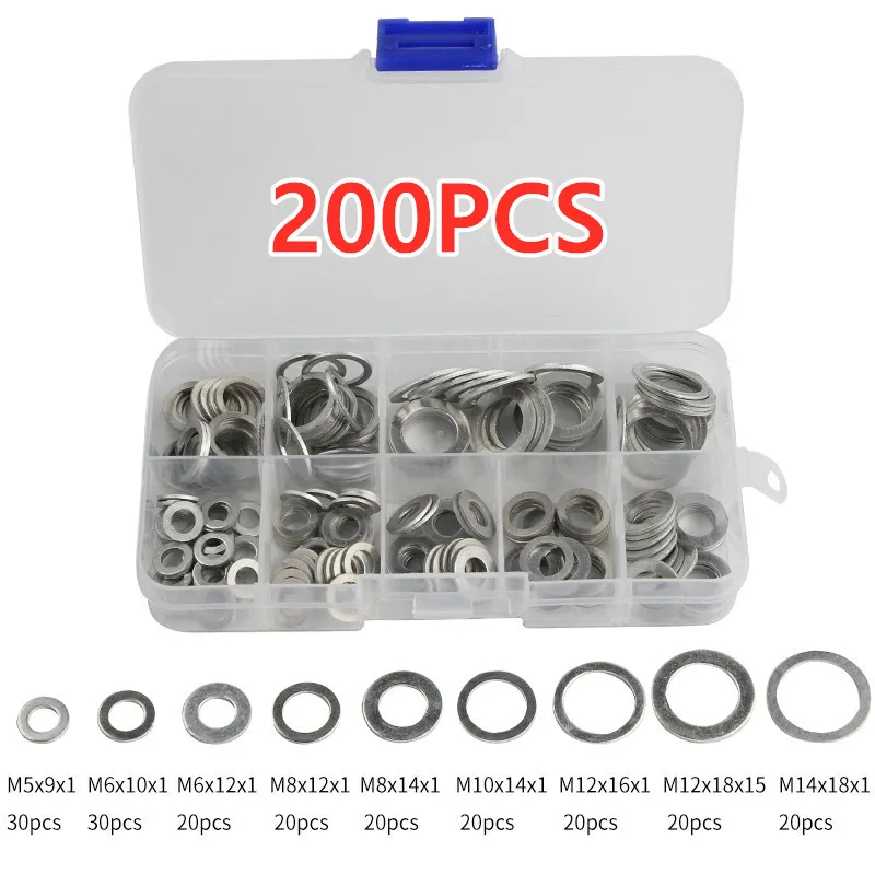 200 шт. смешанные алюминиевые прокладки, шайбы, прокладка, алюминие...