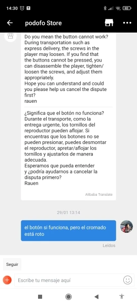 Опасный продукт для вождения, приложение постоянно блокируется, в дополнение к вентиляции хрома на сломанной кнопке громкости. Я пришел, чтобы вернуть его в почтовое отделение, и они зарядили меня 30 евро. Я чувствую себя оторванным, со своей стороны я больше ничего не покупаю у AliExpress.