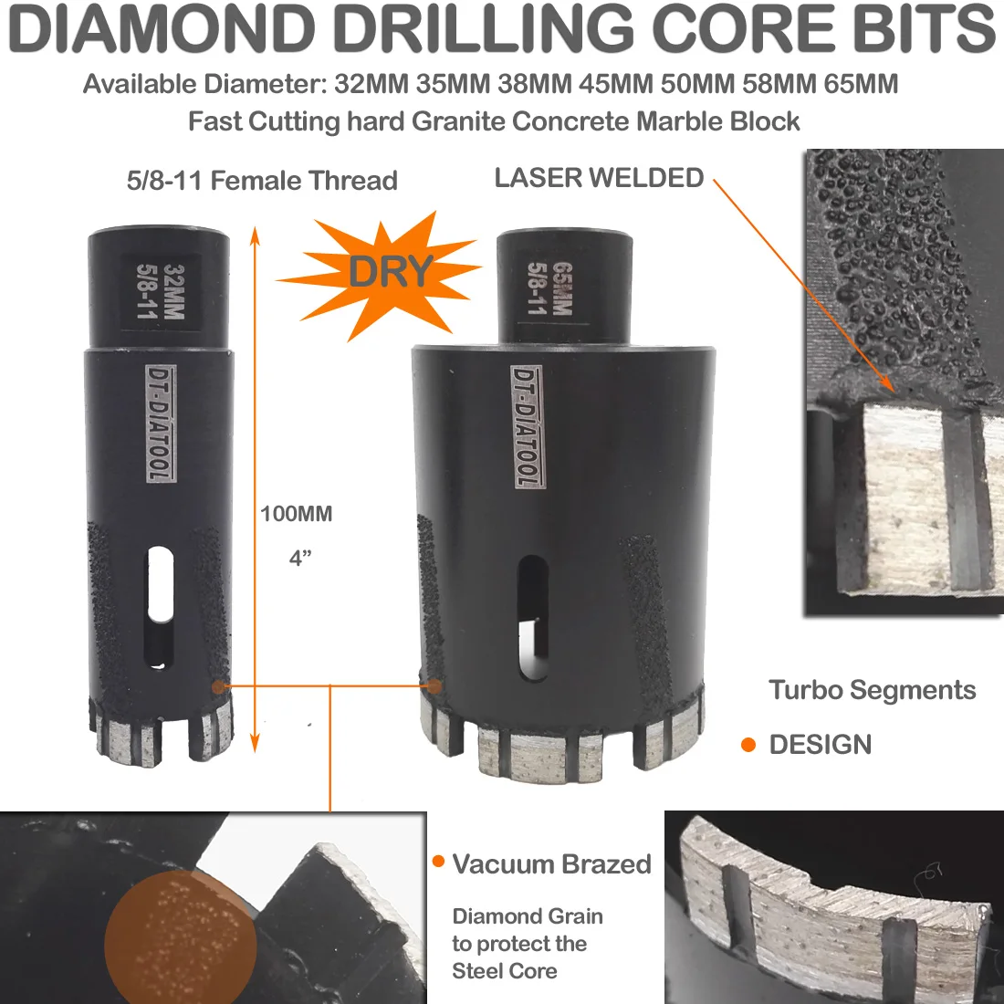 DT-DIATOOL сверло с алмазным напылением, коронка с алмазным напылением для сухого сверления гранита, мрамора, природного камня M14 или 58-11, резьба Лазерная сварная, 1 шт.