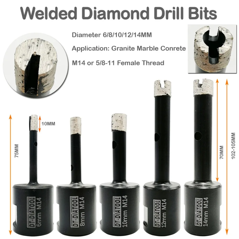 Профессиональное алмазное корончатое сверло (Мокрое) M14 или DT-DIATOOL-11, резьбовое сверло для гранита, мрамора, кольцевой пилы, 58, 1 шт.