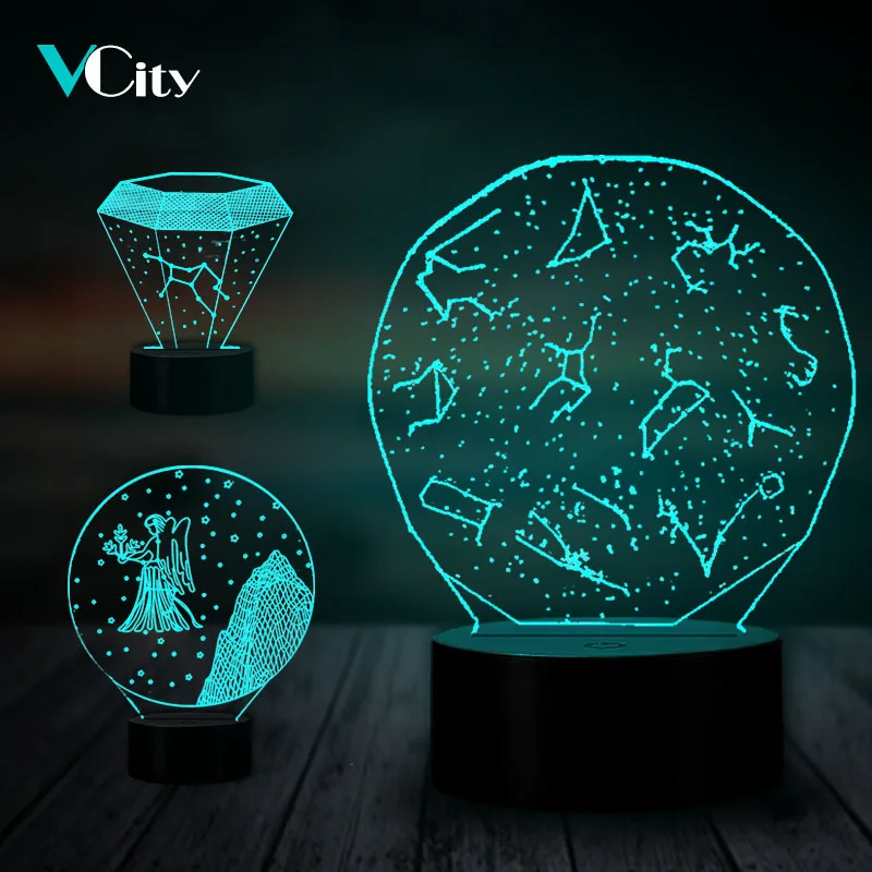 VCity двенадцать созвездий 3D Светодиодная лампа ночник Дева голограмма Иллюзия уникальная лампа домашний декор подарки для друга любимого ребенка