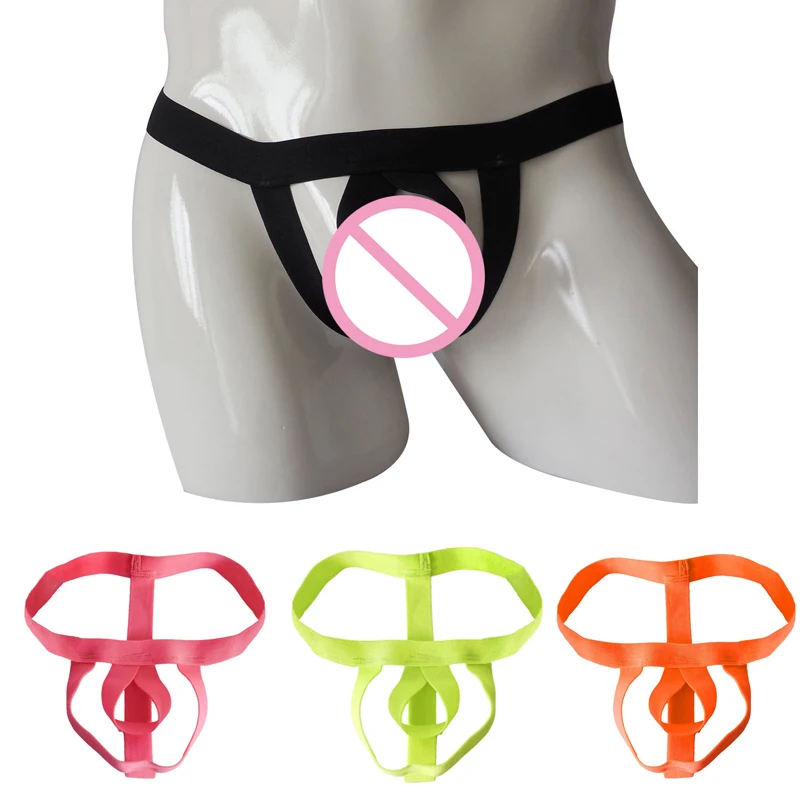 Стринги мужские, с Т-образной спинкой, эластичные, с открытым мешочком