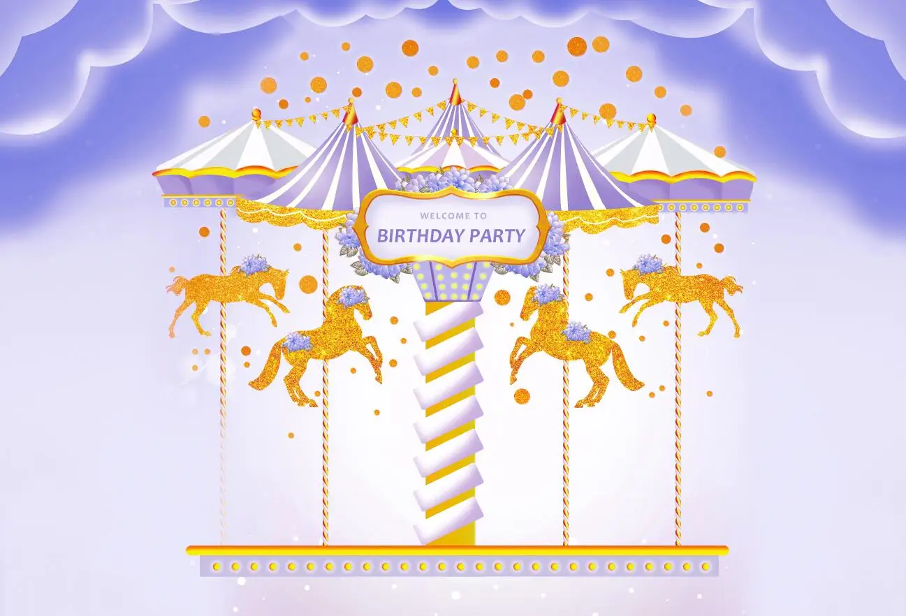 Принцесса Девочка День Рождения Вечеринка декорации цирк карусель игровая площадка фоны карнавал розовый синий сиреневый Блестящий баннер плакат