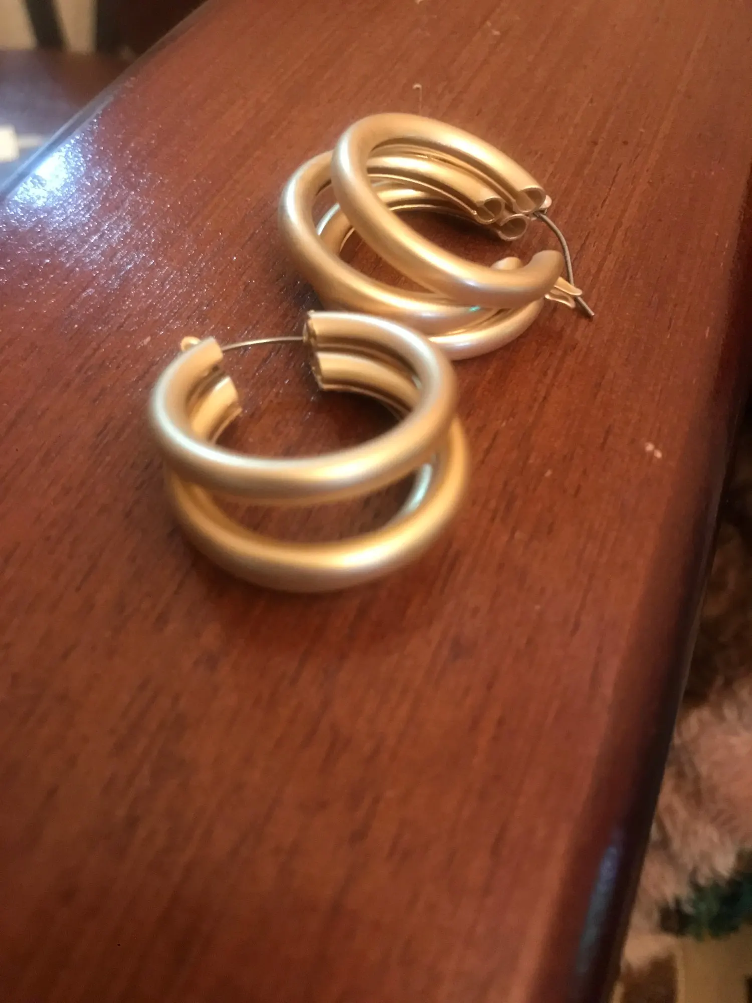Мне они нравятся! Мне нравится, что у них нет этого поддельного золотого цвета, они матовые. Он также кажется более похожим на металл, который мне очень нравится, но они не чувствуют себя тяжелыми во время ношения. Идеально, я рекомендую!