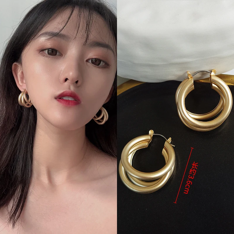 Женские серьги-подвески, матовые золотистые сережки геометрической формы, массивные ювелирные украшения, 2019