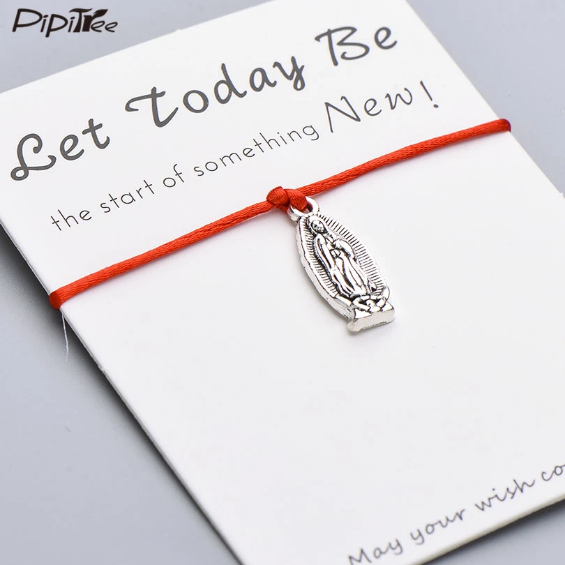 Название: Pipitree Lucky Wish Virgin браслет Mary Let Today Be New Start Red String, амулетные браслеты для женщин, мужчин, девочек, ювелирные изделия, подарок Бренд: 100% новый Материал: металл и веревка Для: женщин/мужчин/детей Регулируемый Размер: 12-28 см Размер карты: 7x9 см