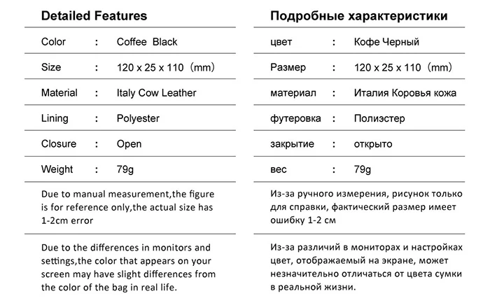 Ширина Изделия1.0in (Male Wallet/Portomonee/Slim Wallet/Woman PURSE)