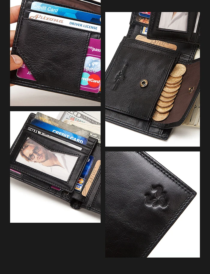 Маленький кошелек из коровьей кожи 100%, мужской кошелек двойного с...