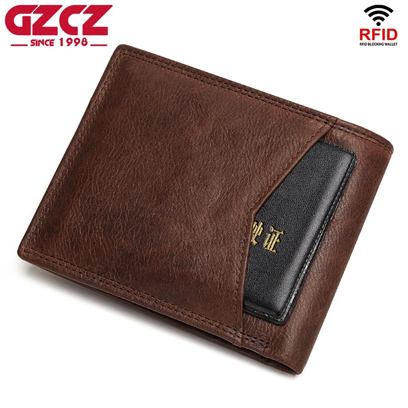 Мужской кошелек из натуральной кожи GZCZ Rfid 100%, портмоне, портмоне, держатель для карт, маленький кошелек высокого качества