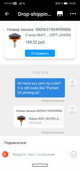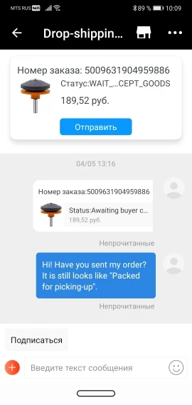 Товар не получен, несмотря на статус «закончен» из-за медленной доставки, несмотря на дополнительную стоимость доставки.