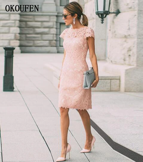 Платье для матери невесты длиной до колена Короткие кружевные с коротким рукавом Индивидуальные женские формальные свадебные вечерние платья madrinha повседневные женские