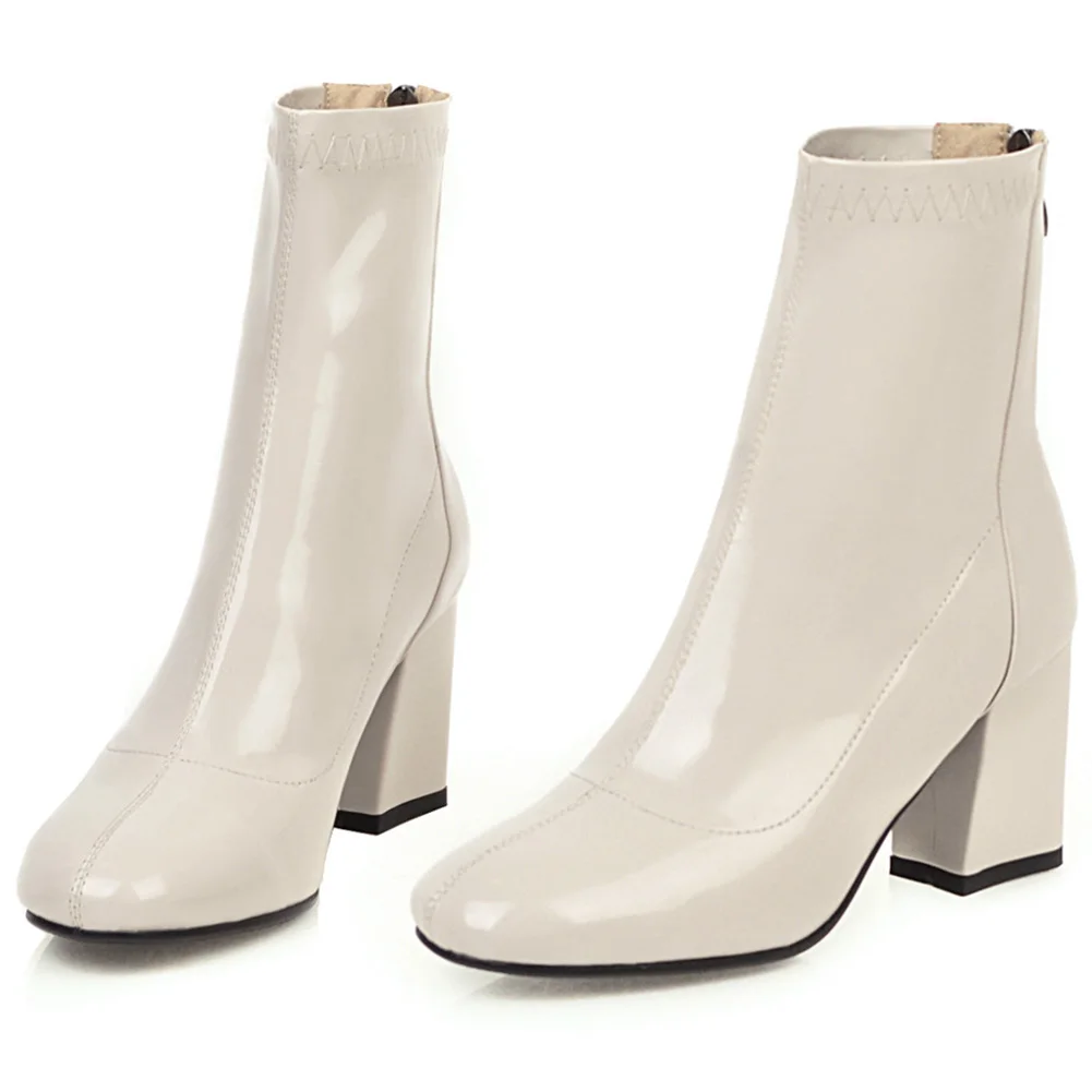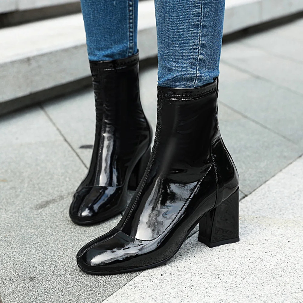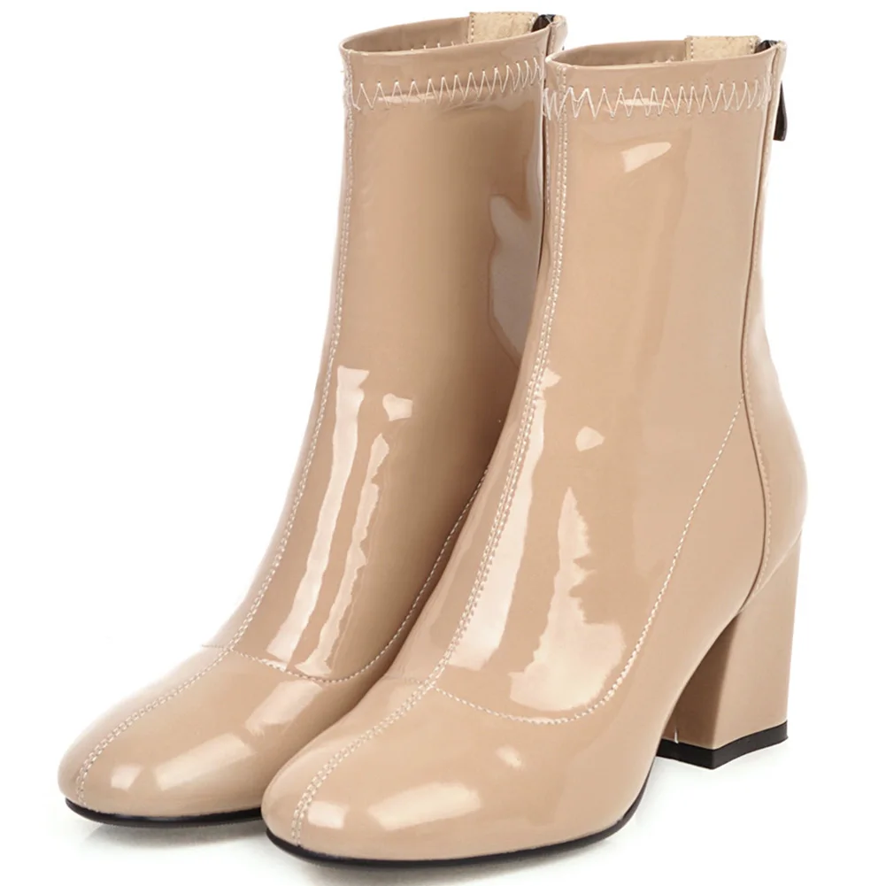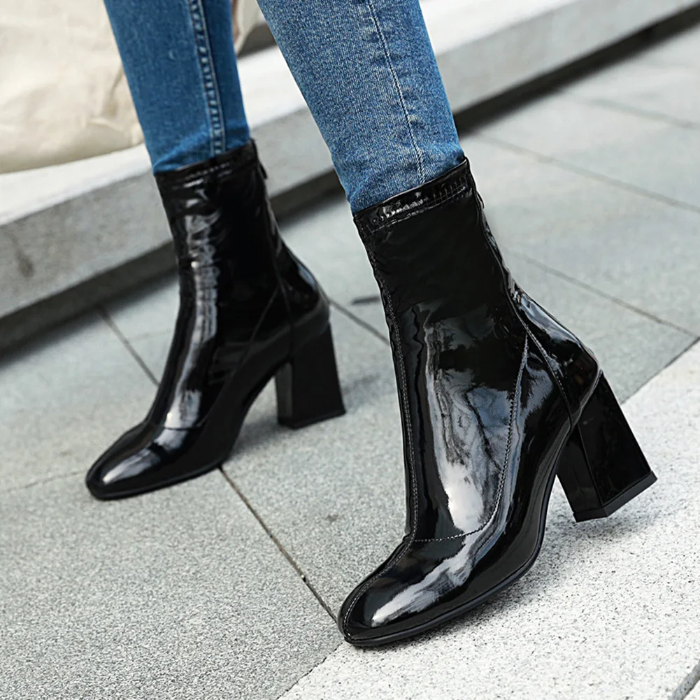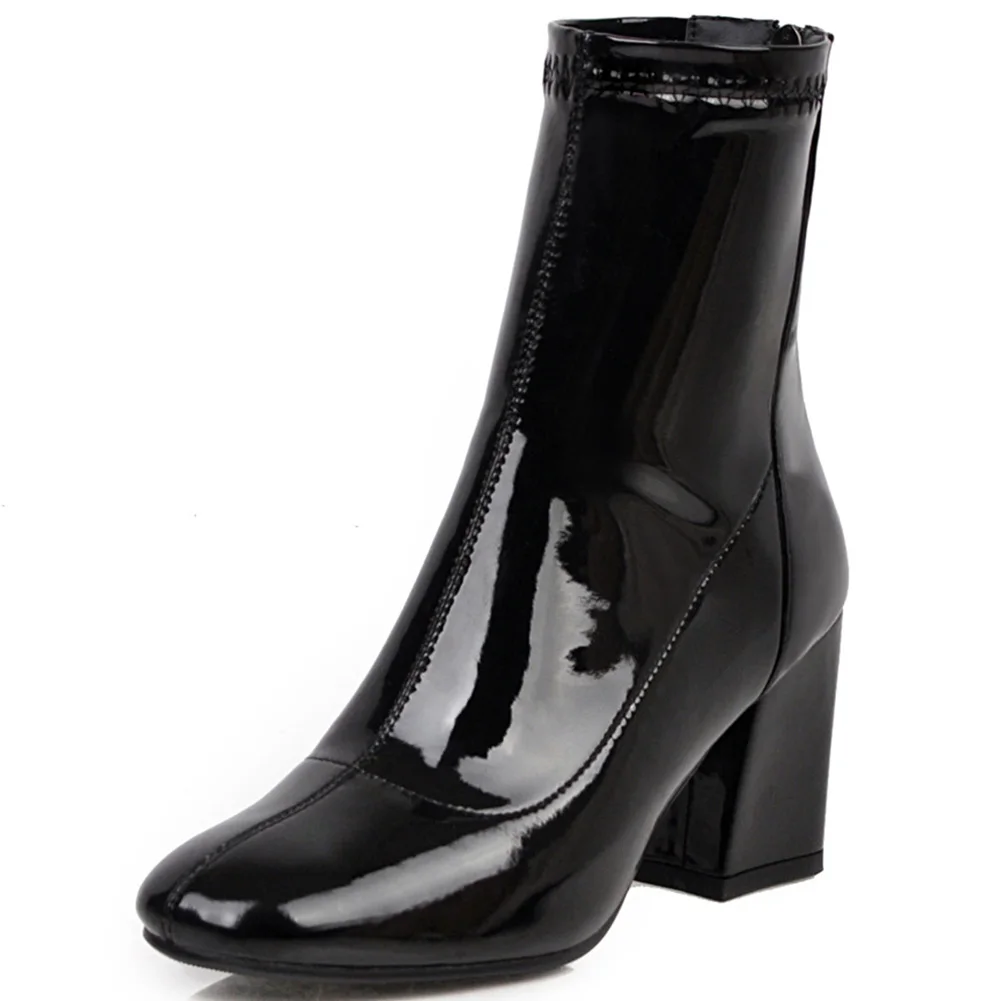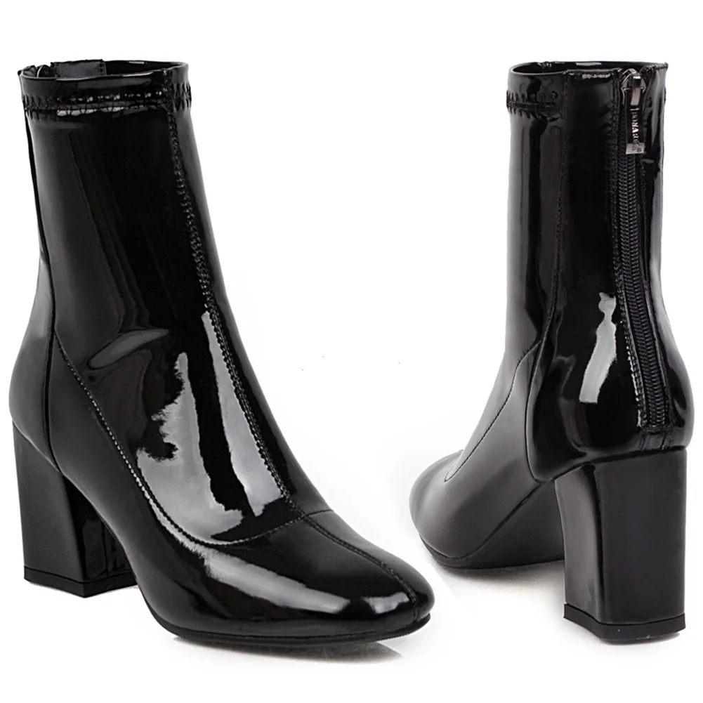 DORATASIAНовинка размера плюс года; Женская обувь из лакированной искусственной кожи на высоком массивном каблуке; Женские повседневные осенние ботильоны для вечеринок