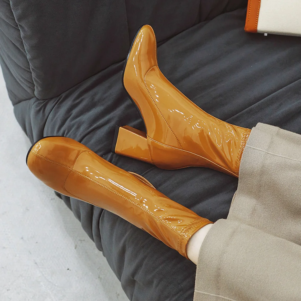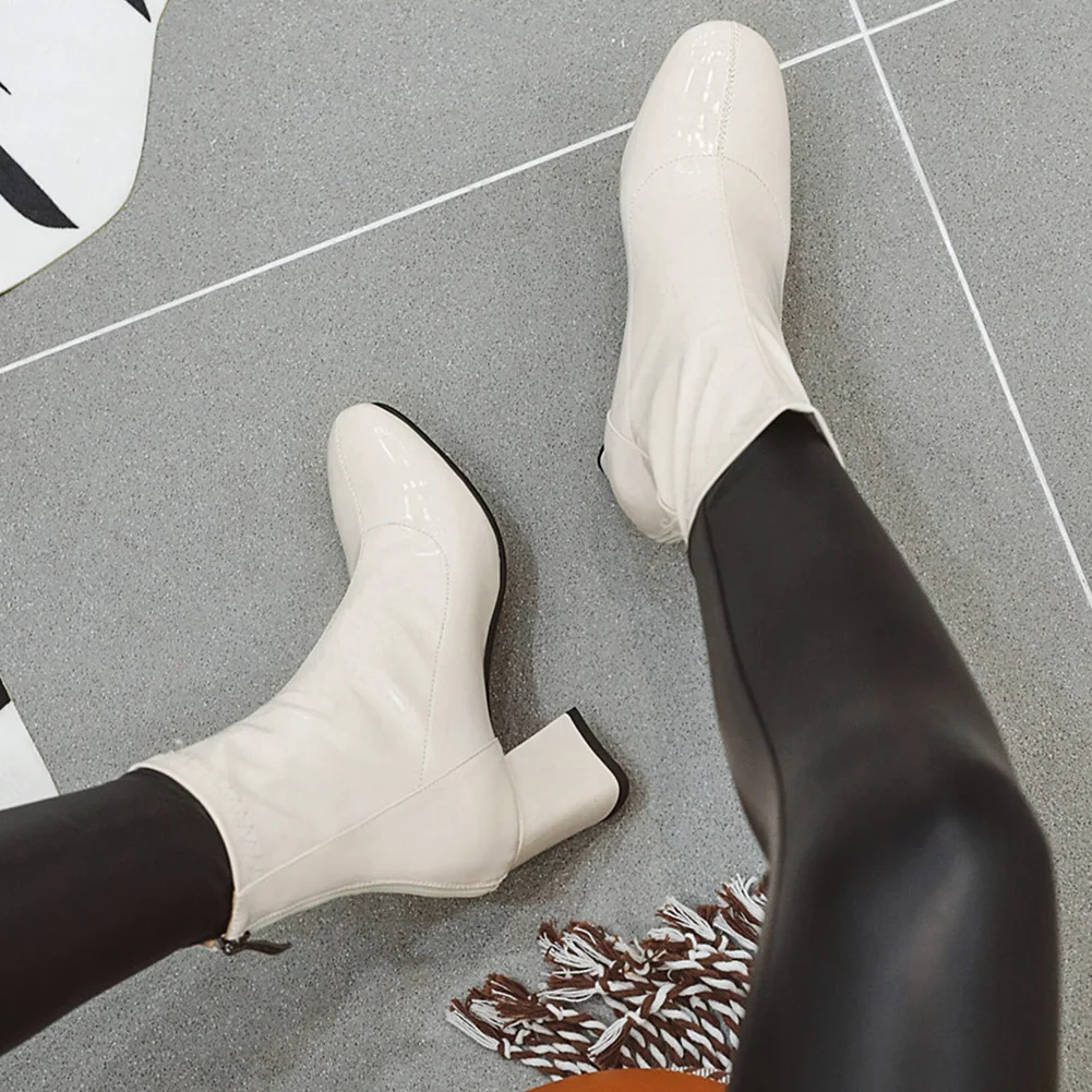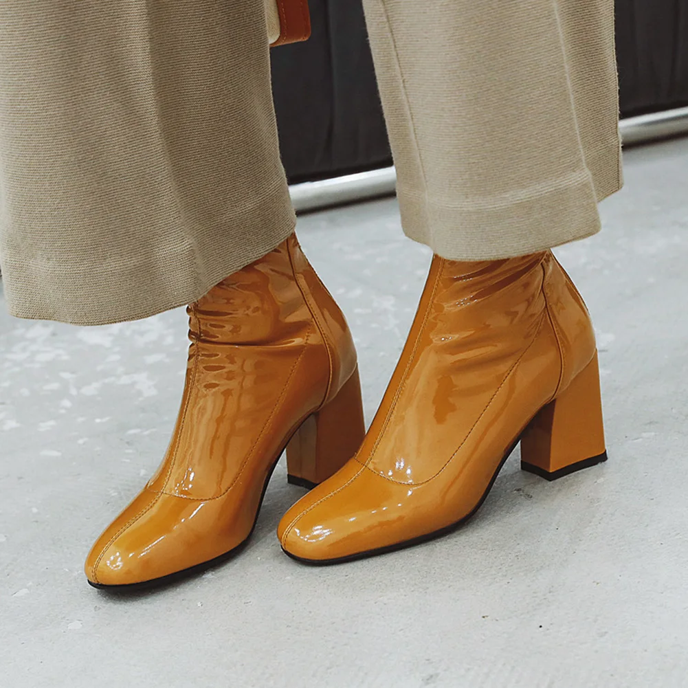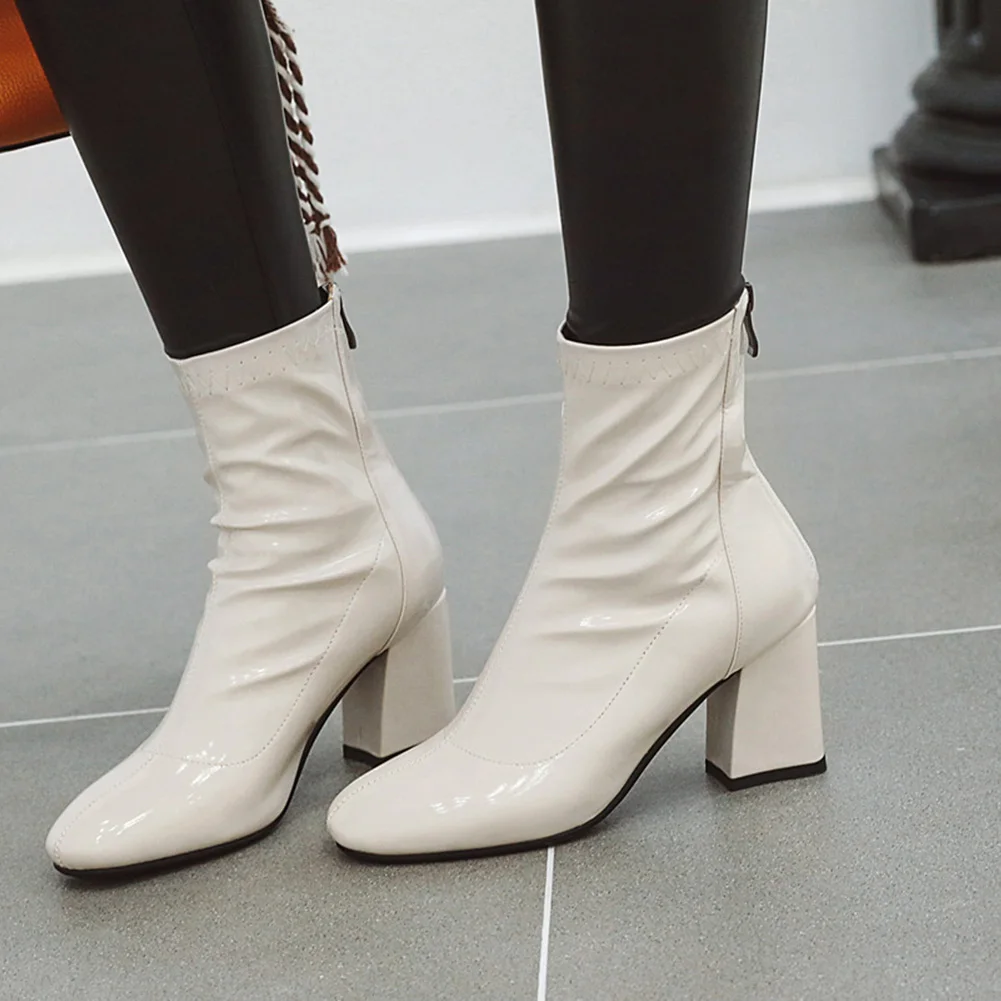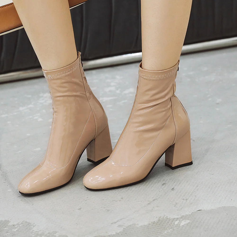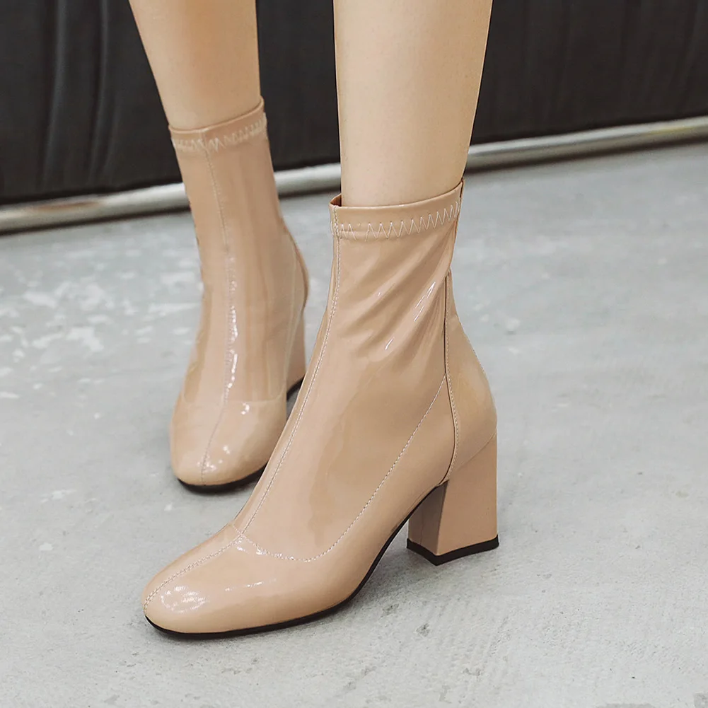 DORATASIAНовинка размера плюс года; Женская обувь из лакированной искусственной кожи на высоком массивном каблуке; Женские повседневные осенние ботильоны для вечеринок