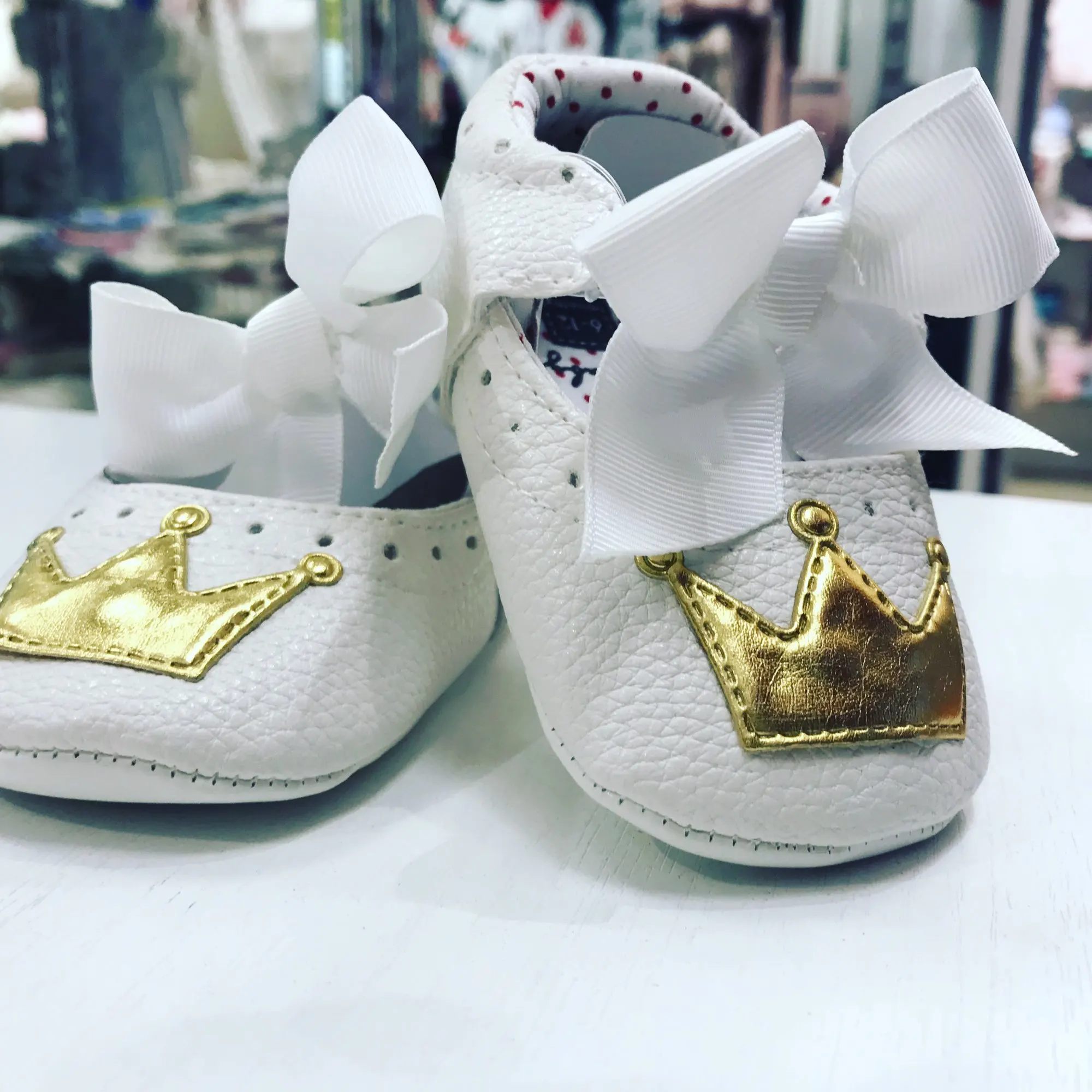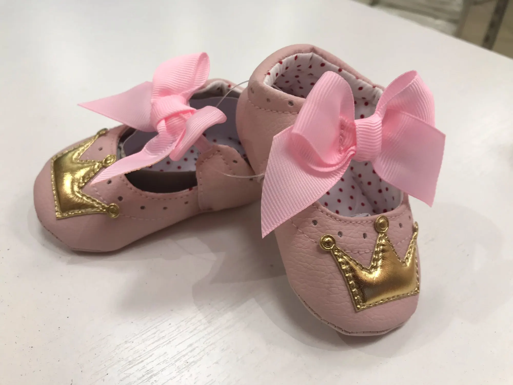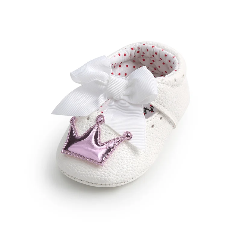 Детская обувь для девочек с короной и бантом, нескользящая обувь из искусственной кожи на резиновой подошве для новорожденных