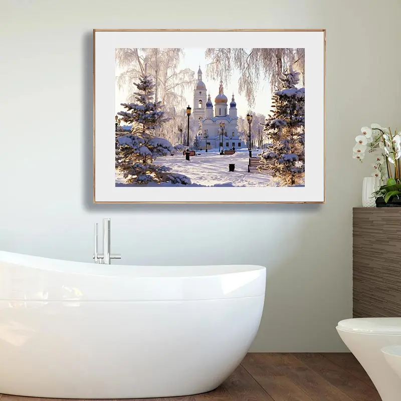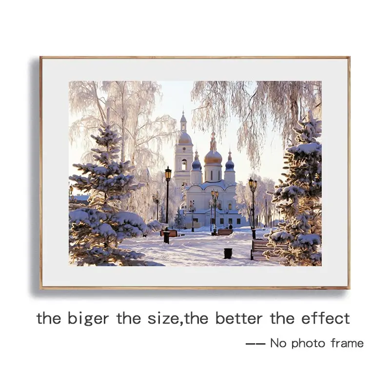 5D алмазная живопись сделай сам, церковный зимний пейзаж, полная Алмазная вышивка, снежный пейзаж, мозаика, картина стразы, Декор