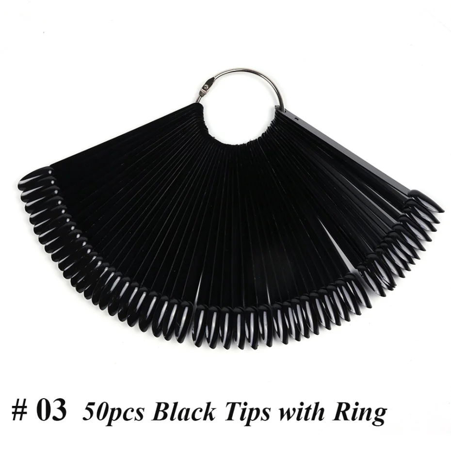 50 шт. овальные накладные ногти черный натуральный прозрачный чехол акриловый дизайн ногтей Практика Дисплей лак гель Маникюрный Инструмент LAA23-1