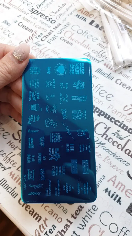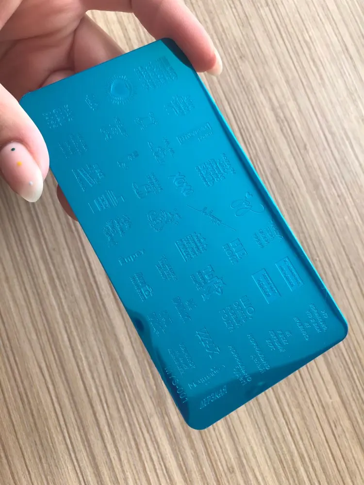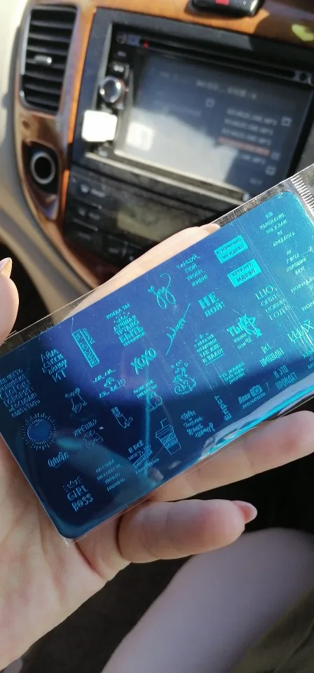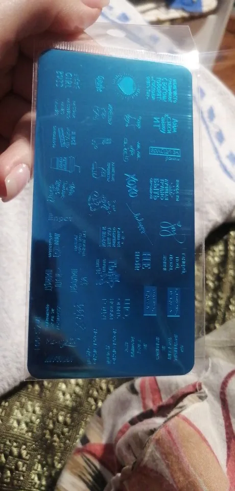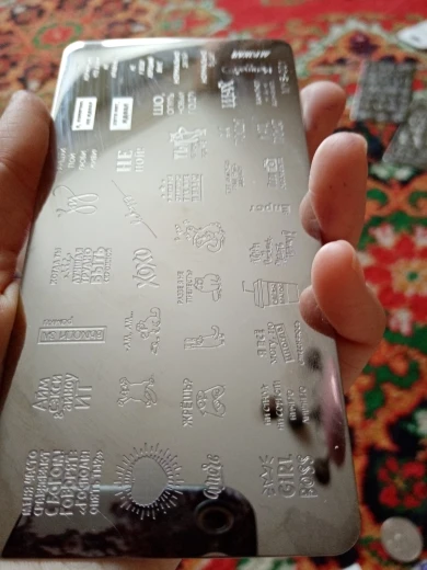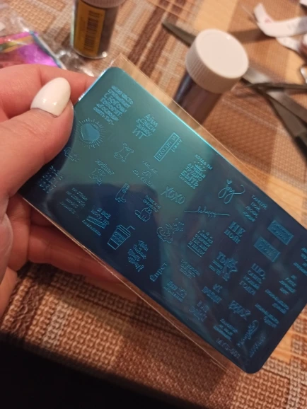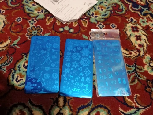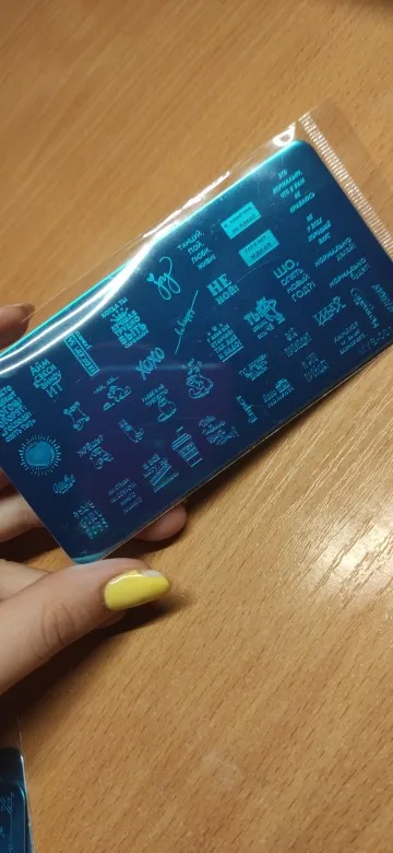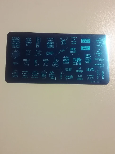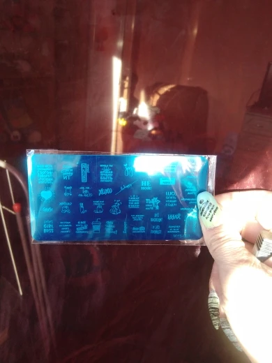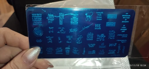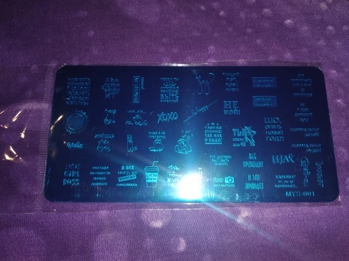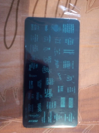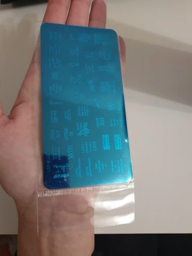 Пластинка хорошая, но я ожидала, что будет побольше размером) Рисунок четкий, без царапин, лак отдаёт хорошо. Довольна заказом. А ещё довольна быстрой доставкой. Заказала 28.11, получила 17.12. Хотя изначально не предполагала, что к новому году успеет!